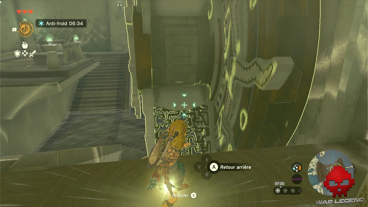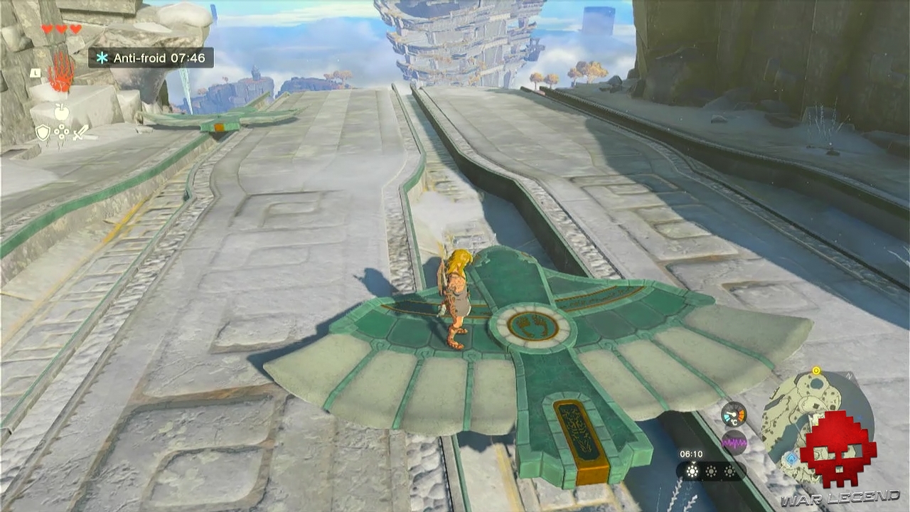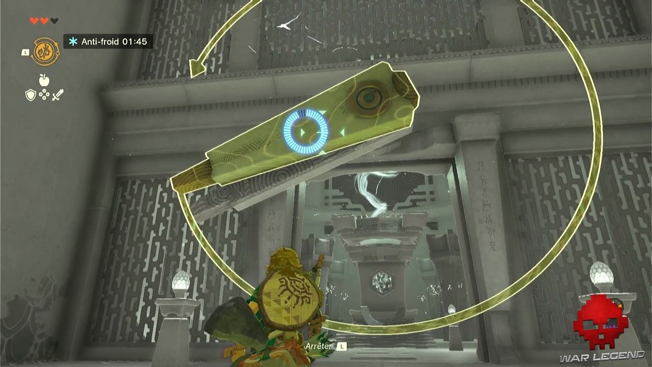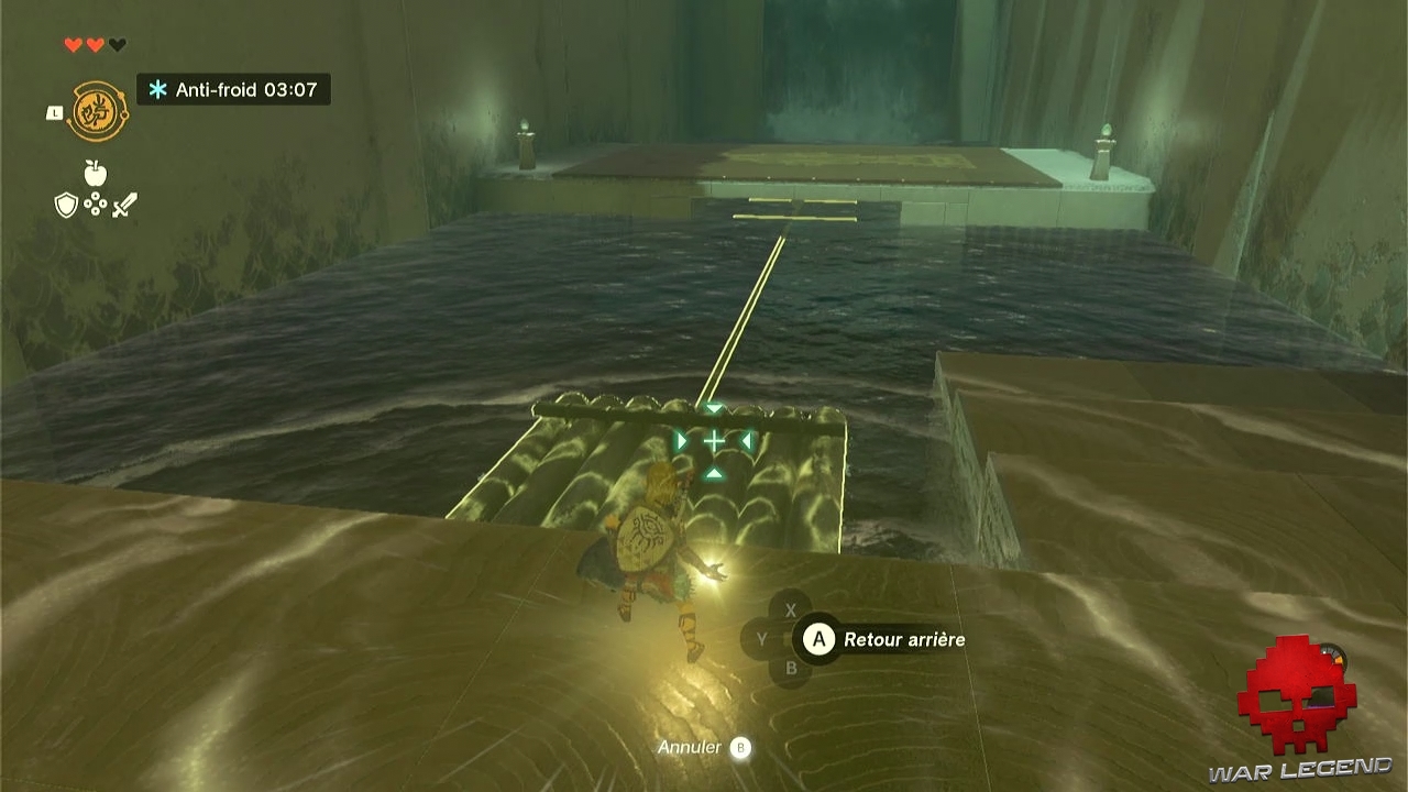 N’ayez pas peur de bien pencher le planeur en avant pour plonger vers le Temple du Temps. Si la trajectoire n’est pas satisfaisante, voire dangereuse, utilisez Rétrospective comme mesure d’urgence sur le planeur, et recommencez sereinement.