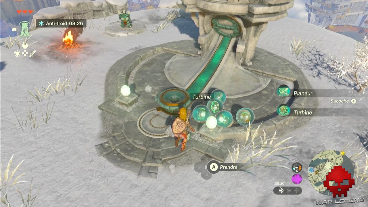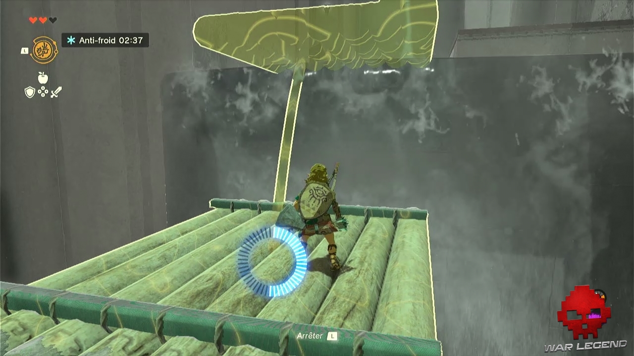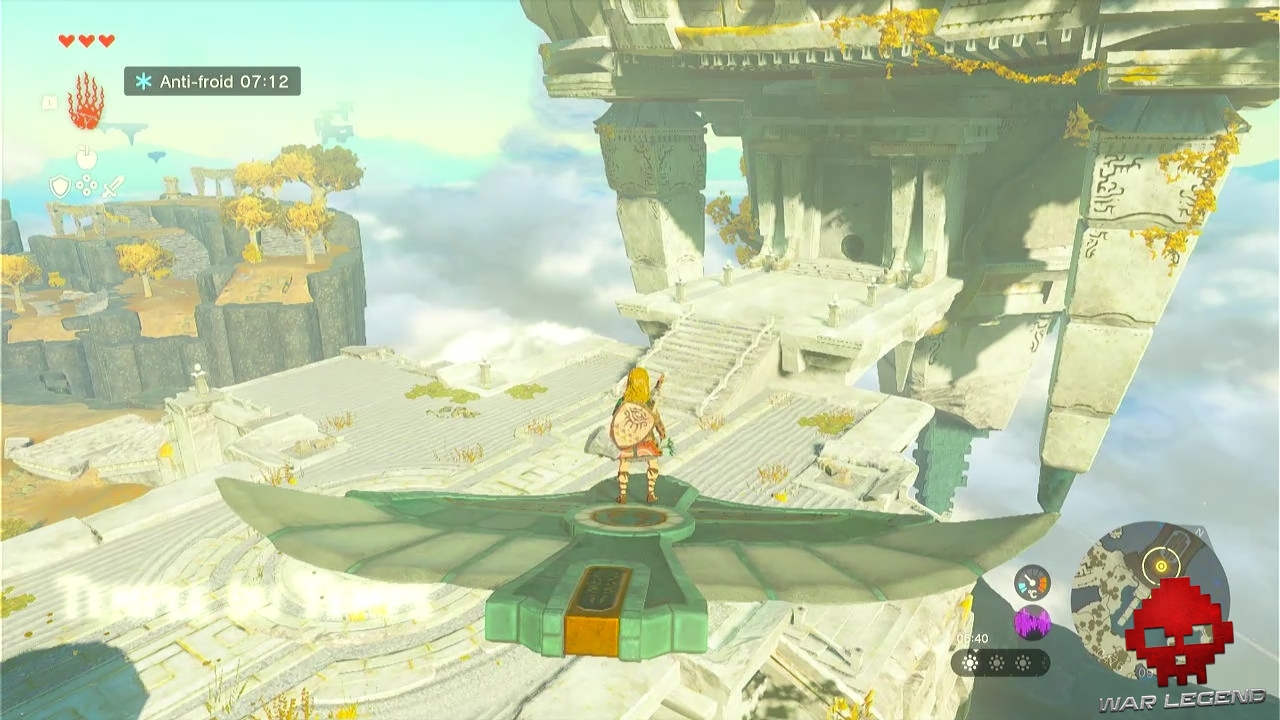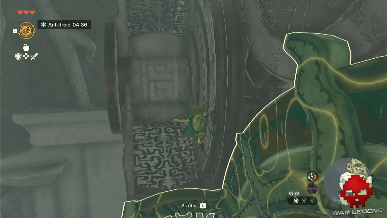 N’ayez pas peur de bien pencher le planeur en avant pour plonger vers le Temple du Temps. Si la trajectoire n’est pas satisfaisante, voire dangereuse, utilisez Rétrospective comme mesure d’urgence sur le planeur, et recommencez sereinement.
