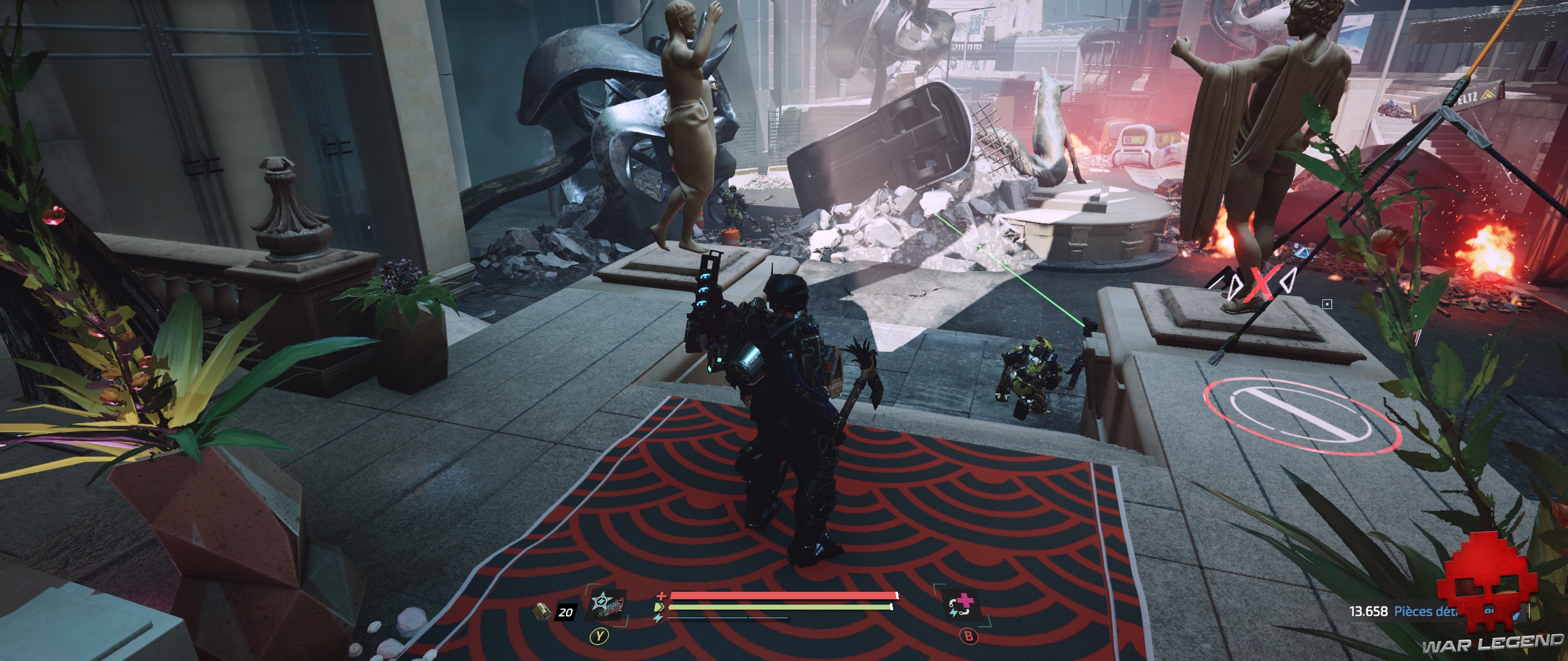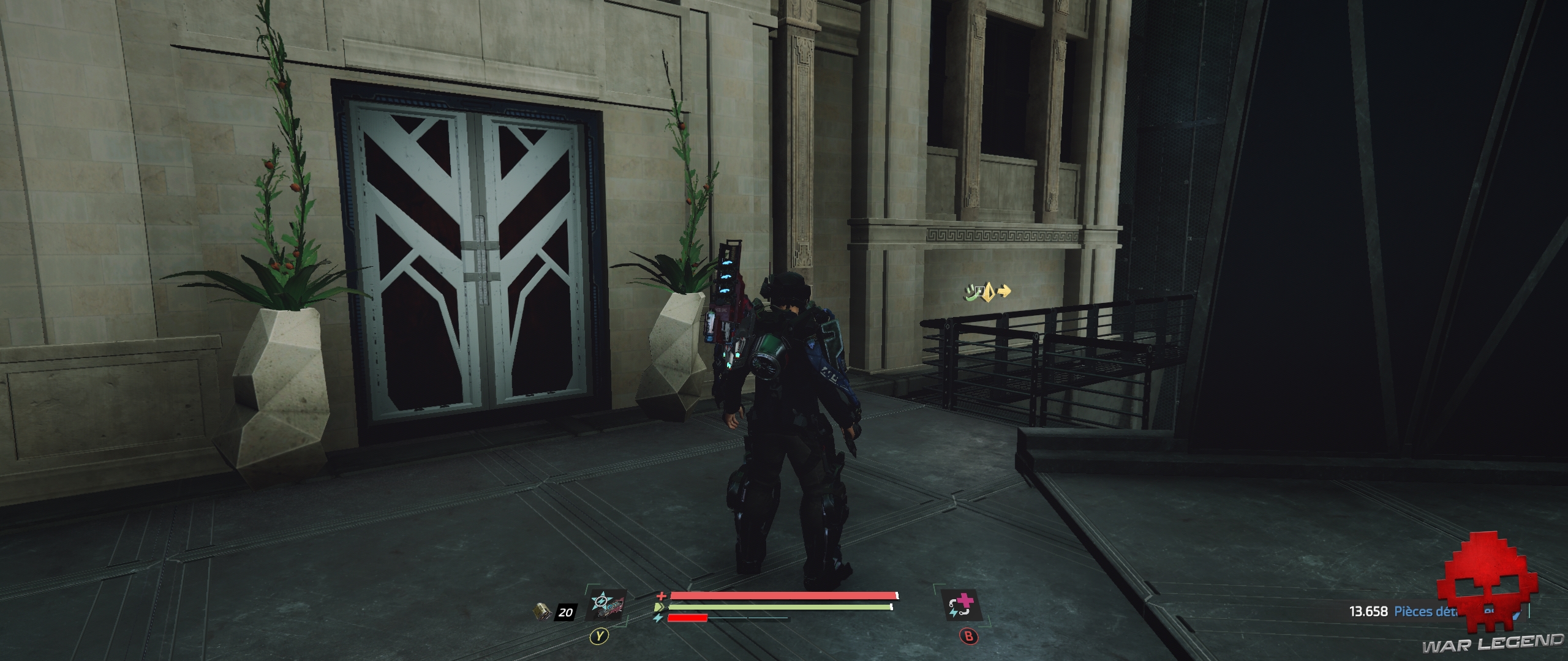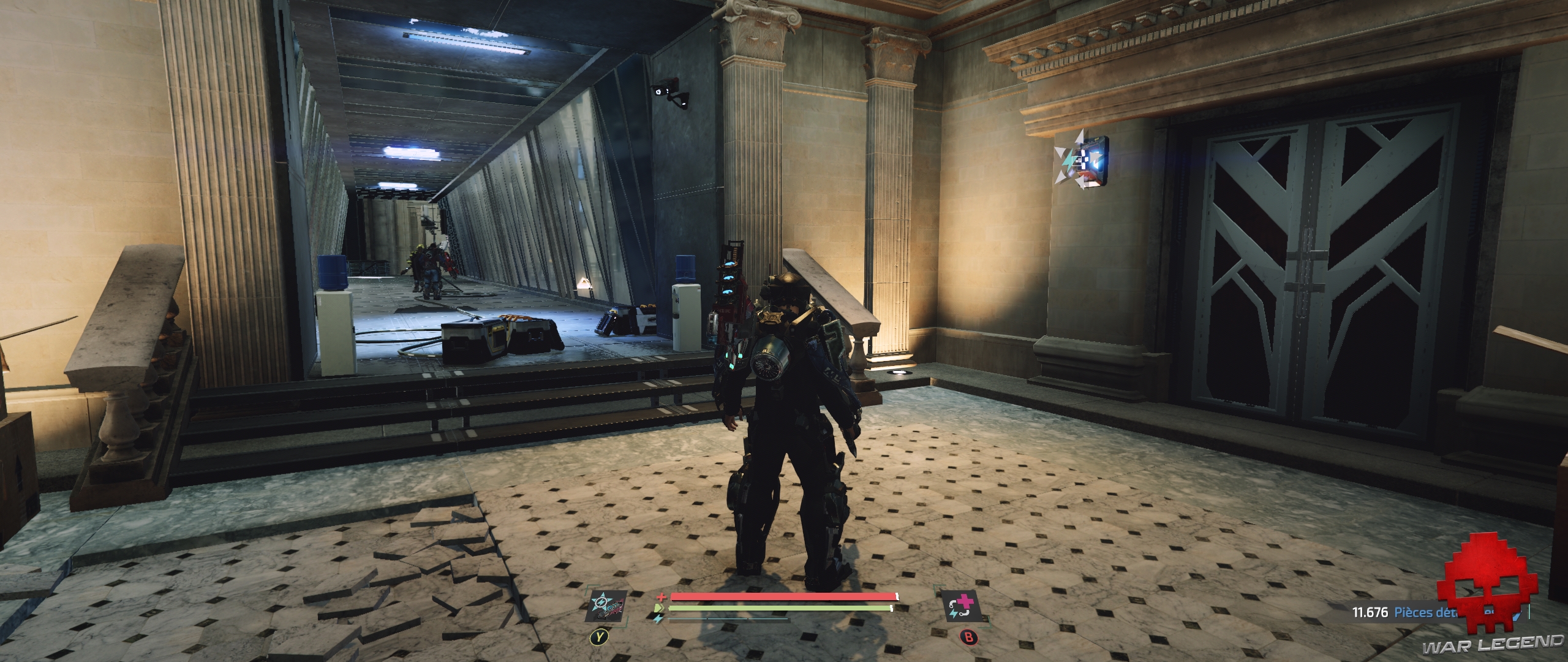Vous trouverez un Condensateur d’exosquelette XL et une porte pour créer un raccourci. Revenez à vos moutons. Suivez le chemin jusqu’à apercevoir de nouvelles têtes à casser.