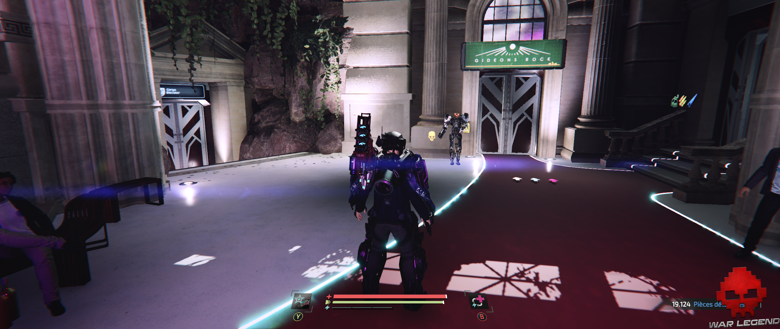 Parlez-lui pour qu’il vous confie votre prochaine quête : vous entrez officiellement en concurrence avec les mercenaires de Jordan Black pour chasser le grand monstre dont vous entendez parler depuis un moment. Entrez ensuite dans la station médicale à droite pour sauvegarder ce point de réapparition, et préparez-vous à chasser du monstre de nanites.