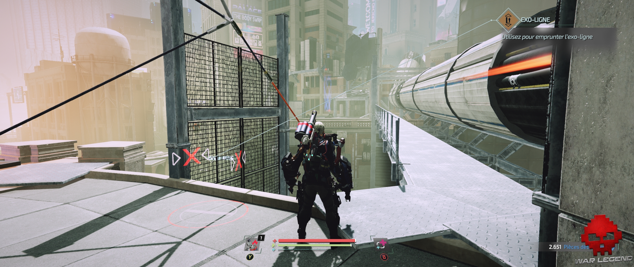 Allez au bout du chemin et sautez pour atteindre l’implant Adrénaliseur de batterie. Celui-ci peut booster votre régénération d’endurance de 30%. Revenez sur vos pas et prenez à gauche pour vous retrouver à nouveaux en extérieur. Suivez les tuyaux et prenez l’ascenseur magnétique après avoir récupéré l’enregistrement Passages secrets.