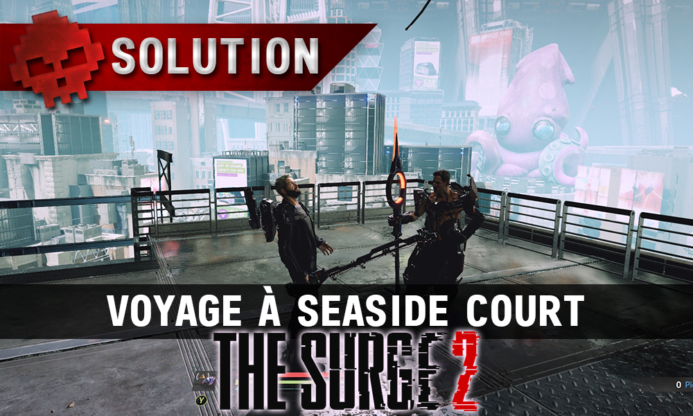 Ensuite, montez les escaliers (encore) et faites la rencontre de M. Bontuyaux, une machine ayant la tronche d’un distributeur et vous récompensant pour les enregistrements audio que vous trouvez. Après quoi, ouvrez la porte à proximité pour ressortir du côté où vous êtes arrivé, mais en hauteur. Suivez la grande passerelle, récupérez le Tas de ferraille rouillé recyclable, descendez les escaliers pour tuer l’ennemi que vous avez zigouillé tout à l’heure à coup de drone (attention à ne pas tomber) et allez débloquer un raccourci. Ensuite, rentrez à Seaside Court.