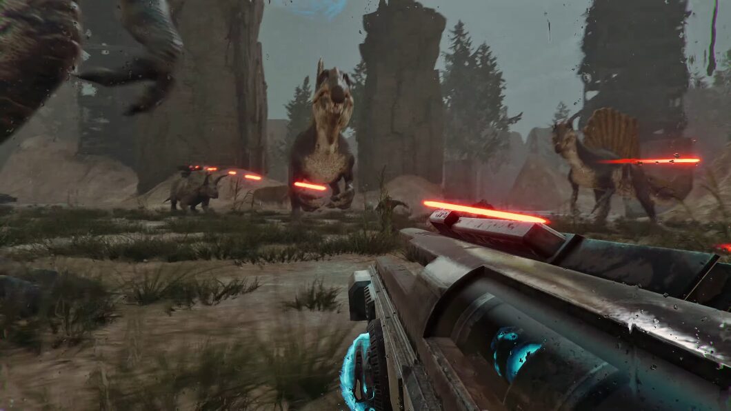 Alors que le concept nous évoquait plutôt du Turok à l’origine, cette bande-annonce lorgne plutôt du côté de Doom Eternal, mais sans sa dimension stratégique. On retrouve donc un FPS extrêmement nerveux dans lequel il sera possible de dasher, de faire des double sauts, et même d’utiliser son grappin pour se balancer. Histoire de pousser la comparaison encore plus loin, les armes n’auront aucun besoin d’être rechargées et les dinosaures pourront être écartelées de toutes les façons possibles à l’aide d’attaques Jugement au corps à corps, qui évoquent furieusement les Glory Kills.