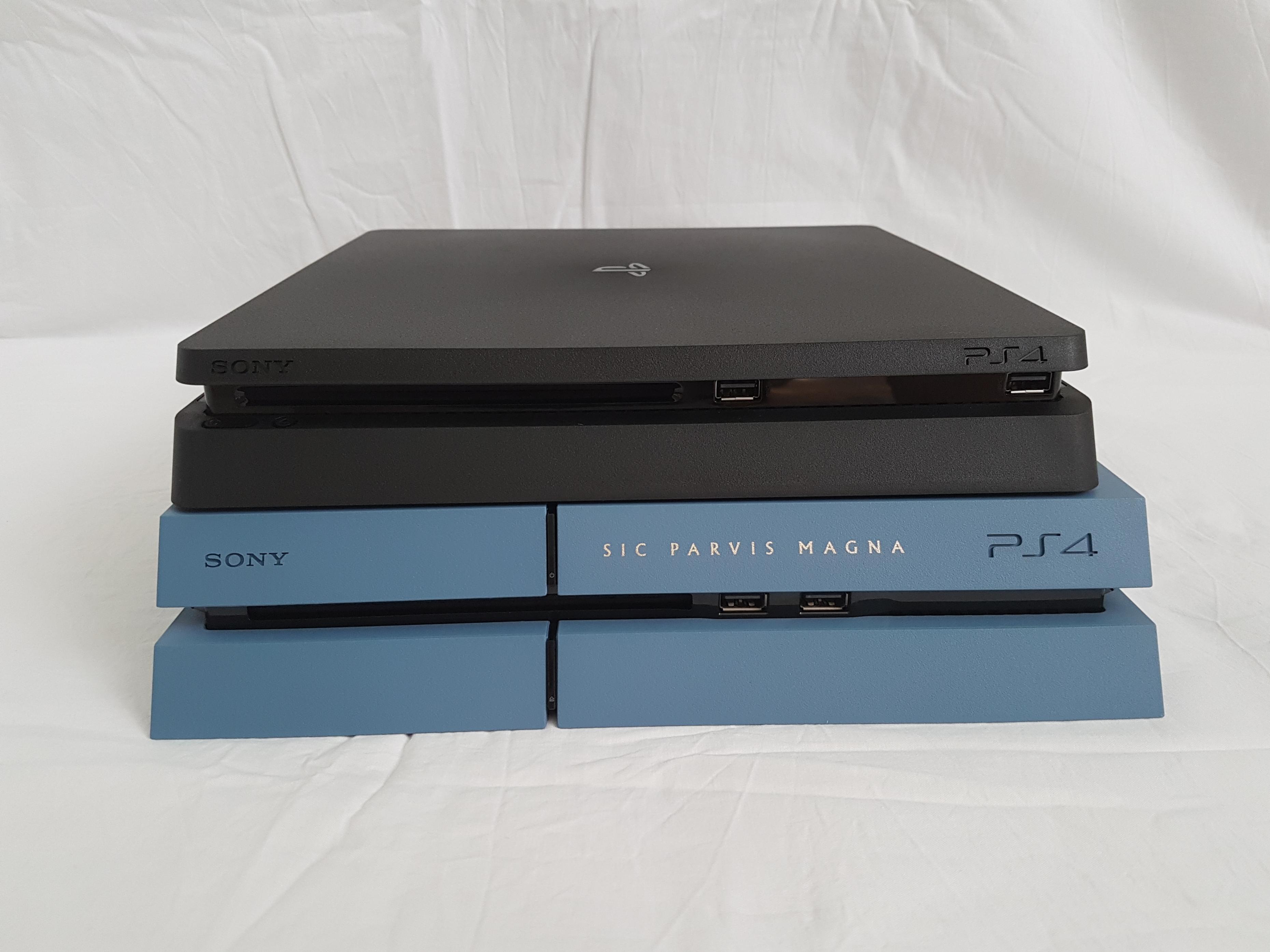 Sony n’a jamais fait la moindre annonce concernant une PS4 Slim. Pourtant, on apprend qu’elle trône déjà dans certaines vitrines de Grande-Bretagne. Sony aurait-il oublié de l’annoncer ? On a un doute, surtout quelques jours avant le PlayStation Meeting. Le site polonais PPE a déja fait un comparatif en image avec la console originale. On constate qu’elle est moins anguleuse et un petit peu plus fine que sa grande soeur.