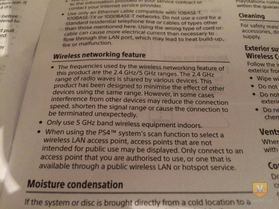 Ainsi, un internaute présente sur Twitter le manuel de la future petite soeur de la PS4 actuelle en révélant qu’elle pourrait supporter le Wi-Fi sur différentes fréquences. Notamment, la fréquence 5 Ghz qui permet d’éviter davantage les interférences et de conserver une meilleure bande passante que la 2,4 Ghz.