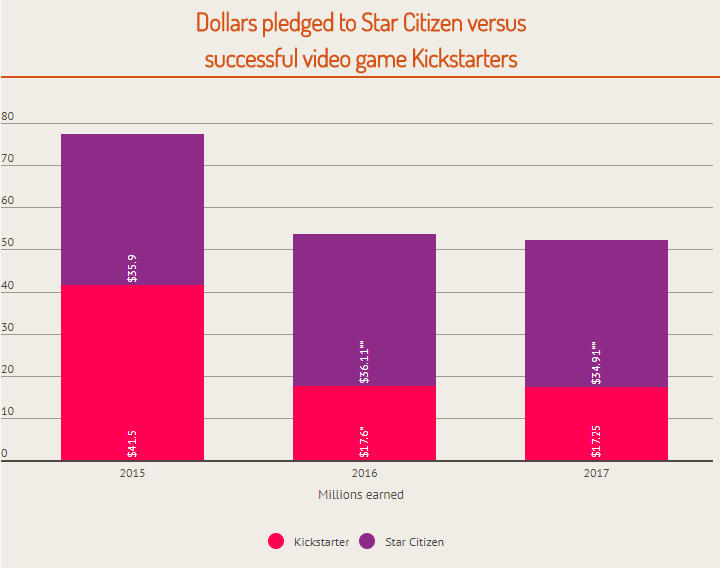 Star Citizen a reçu plus d’argent de ses backers en 2017 que tous les jeux financés par Kickstarter la même année.