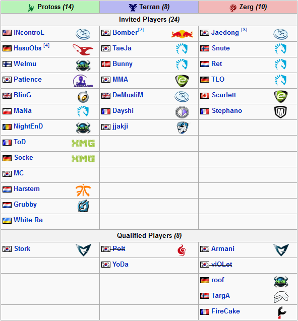 Pour cette édition on aura le plaisir de retrouver 4 joueurs français, Dayshi, Firecake, ToD et le jeune retraité Stephano, fraichement recruté dans la team Meltdown. Seulement il ne sera pas évident de s’imposer pour nos joueurs français face à la masse de joueur coréen et foreigners de qualité.