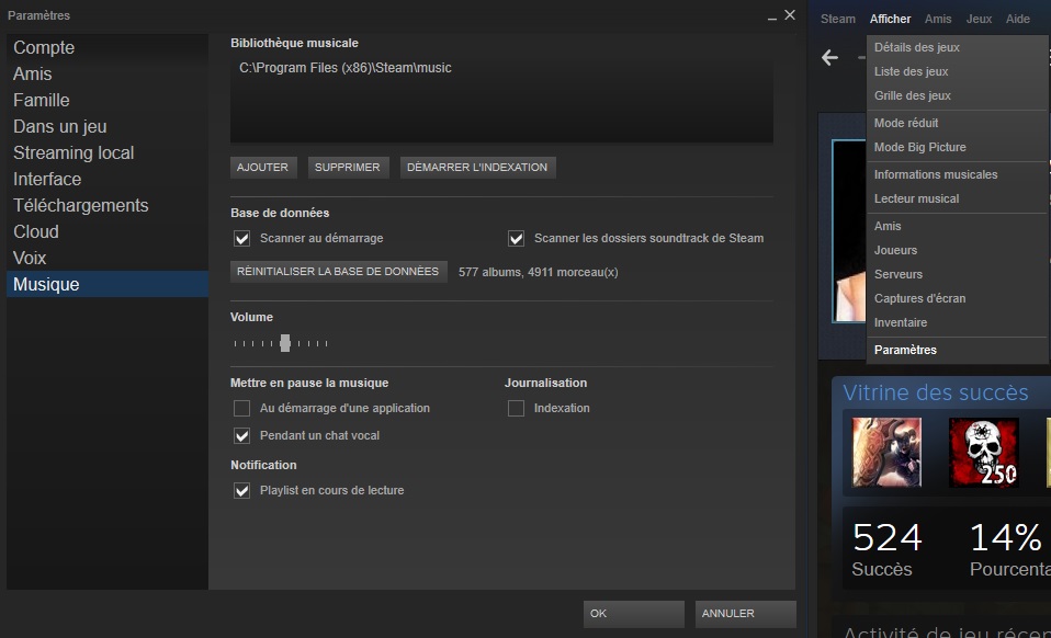 En effet, Steam a intégré un lecteur musical au sein de son logiciel. Pour y accéder, rien de plus facile :