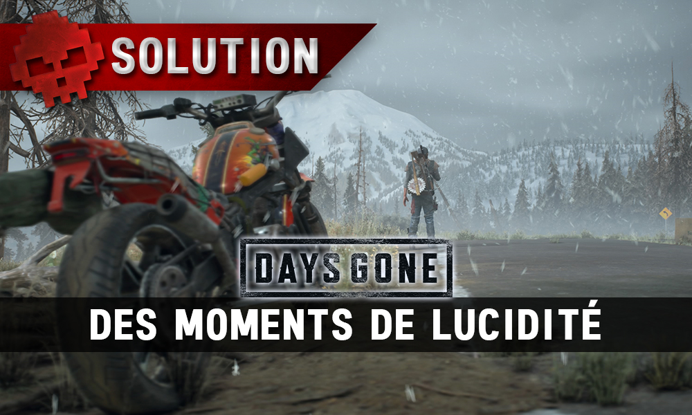 Soluce Days Gone – Des moments de lucidité Attention : cette soluce contient des spoilers. Partez pour le sud-ouest de Lost Lake. Avancez en direction de l’hélico et placez immédiatement un mouchard dessus. Avancez ensuite jusqu’au buisson sur la pente en…