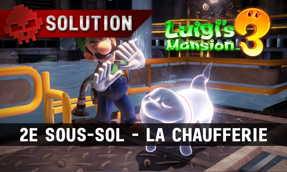 Soluce Luigi’s Mansion 3 – 2e sous-sol : la Chaufferie Pour mieux monter, il faut savoir descendre. L’ascenseur emmène Luigi au 2e sous-sol, dans la chaufferie. J’espère que vous n’avez pas peur de l’eau. Un plombier dans son milieu naturel …Étage…