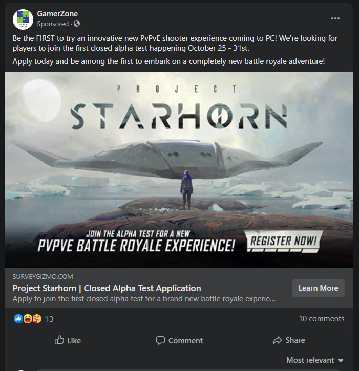 Il y a 15 jours, certains internautes ont commencé à croiser des publicités étranges sur Facebook, Instagram et Twitter les invitant à tester un certain Project Starhorn. Il s’agirait d’un nouveau Battle Royale produit par Tencent qui mélange PvP et PvE. Le problème, c’est que le titre est inconnu au bataillon (mais pas tant que ça).