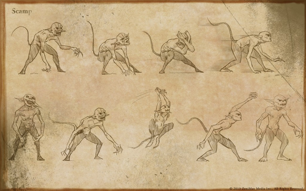 Tout comme l’Ogrim, le Kama et autres créatures déjà existantes dans le monde d’Elder Scrolls, l’équipe chargée du dessin conceptuel du Kwama s’inspirent des anciennes illustrations, mais en rendant la créature encore plus réaliste. Malgré son manque d’intelligence et sa petite taille, le Galopin est un Deadra très agile et c’est la caractéristique que les dessinateurs veulent mettre en avant pour faciliter le travail des animateurs 3D.