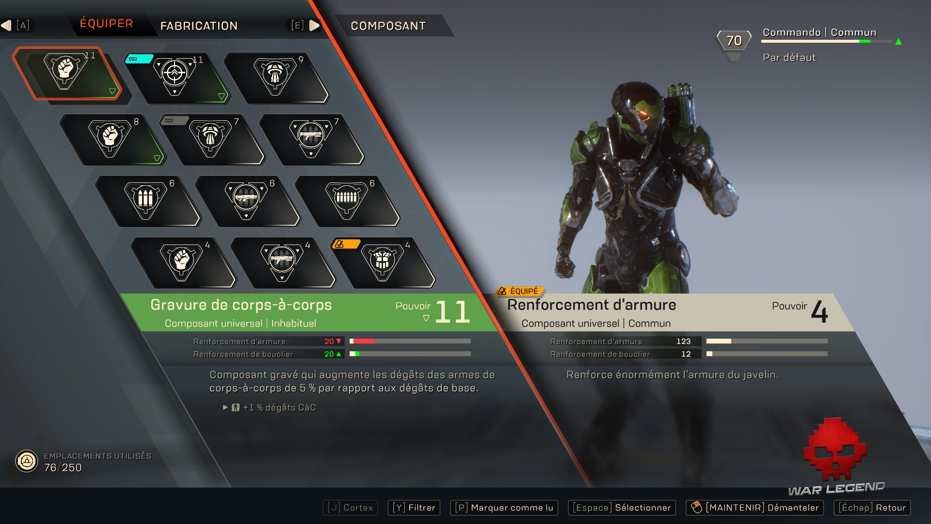 Et il faut bien avouer qu’Anthem se montre extrêmement avare en termes de récompenses. Les différentes armes que l’on ramasse sont, pour la plupart, de simple copié collé d’armes que l’on possède déjà et les bonus associés ne diffèrent que de quelques valeurs, seuls les équipements légendaires se démarquent réellement.
