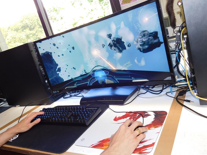 Lorsqu’on le découvre, il est tout simplement impressionnant : pas une seule personne qui l’a croisé dans notre Gaming House ne s’est arrêtée sans un « wow factor » et ce, même éteint. Bien entendu, je vous laisse imaginer les réactions quand il se trouvait allumé sur un jeu. Il n’y a pas de superlatifs suffisants pour le décrire – on peut tenter une espèce de combinaison entre magnifique et énorme : magnorme.