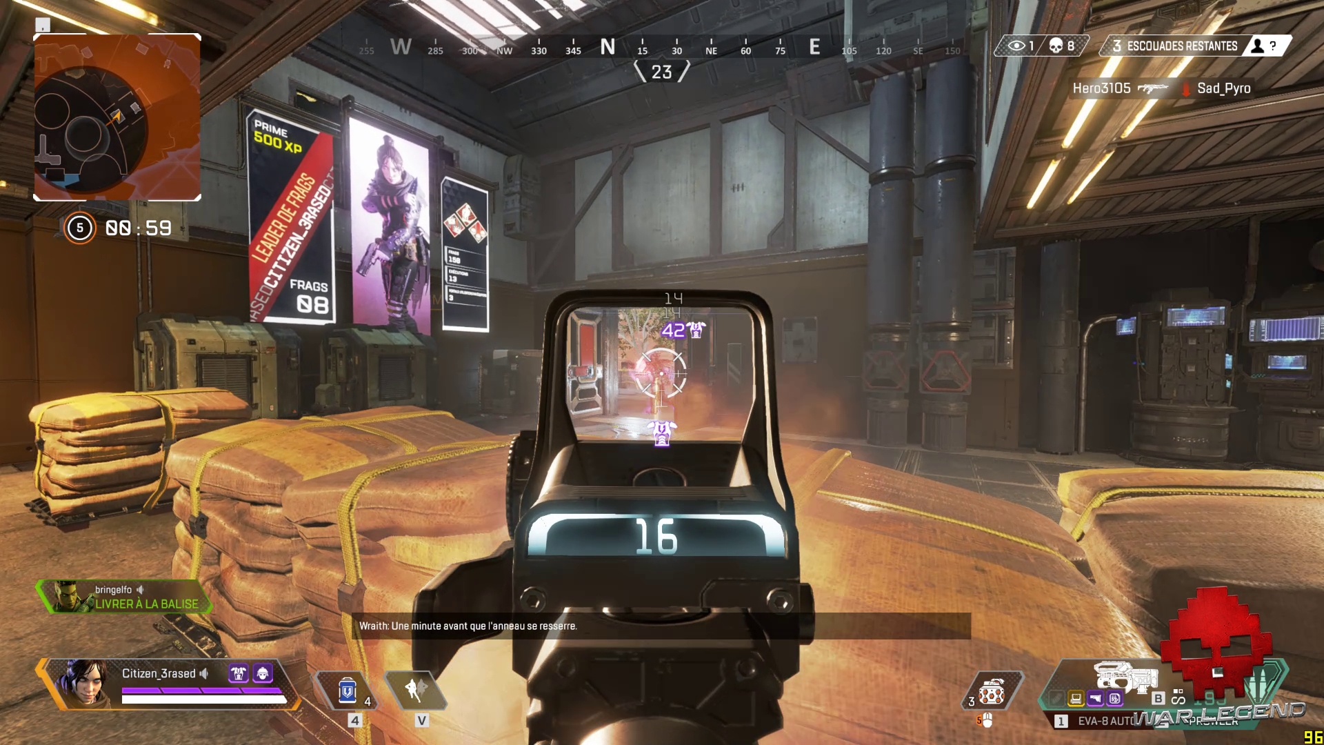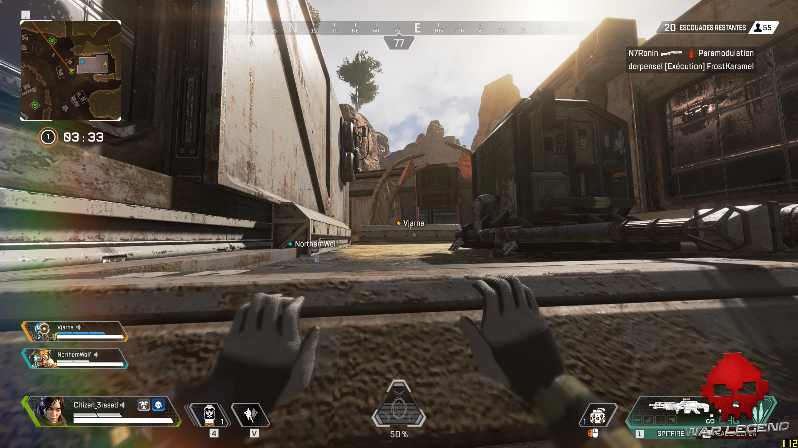 Histoire d’ajouter de l’ambiance et quelques infos intéressantes, les personnages feront des commentaires d’eux même sur le cours de la partie, comme le temps restant avant le prochain cercle ou le nombre d’escouades toujours en vie. Apex Legends en toujours explicite et toujours lisible, quelque soit la circonstance.