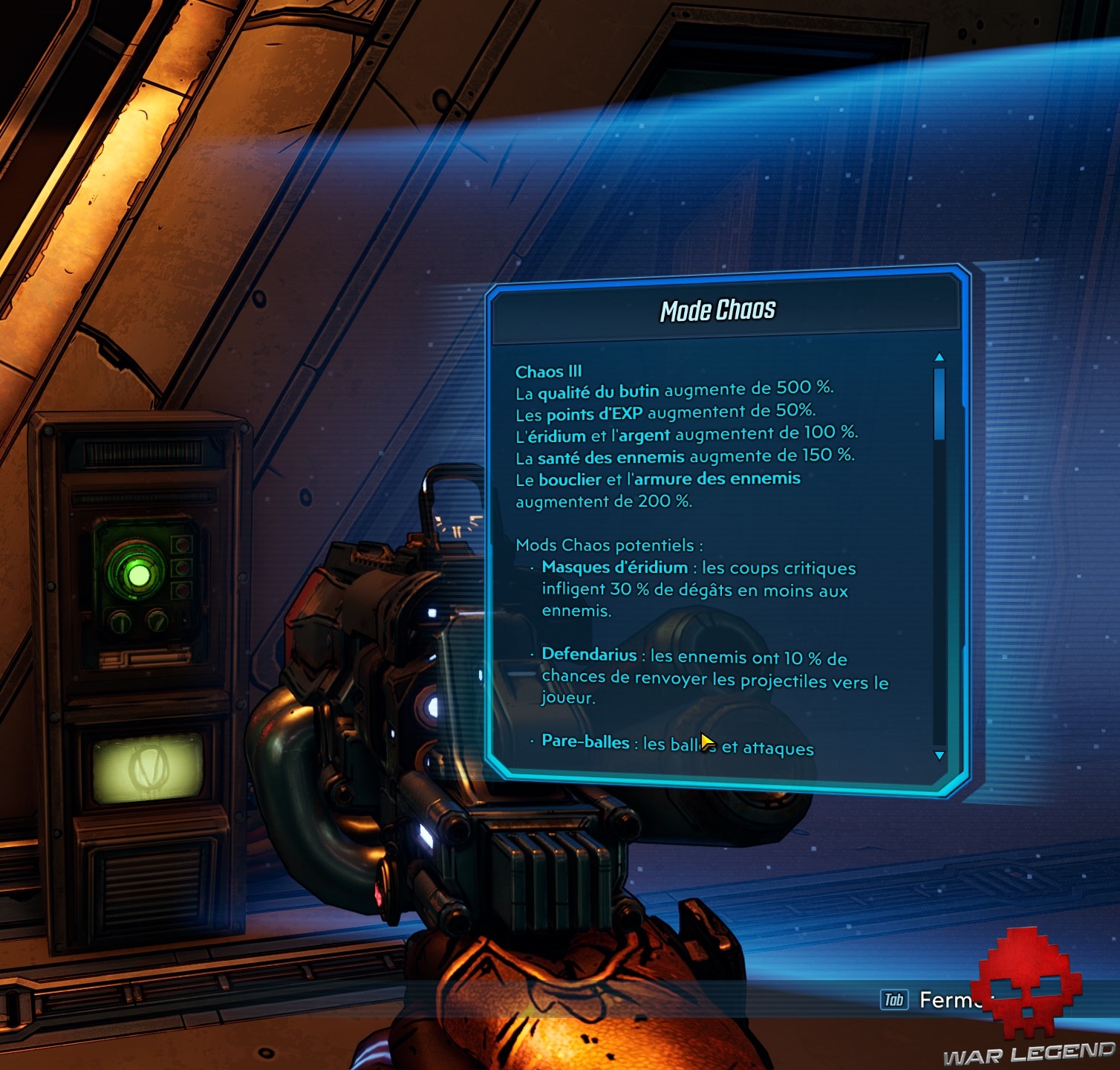 Quand bien même vous arrivez au bout du scénario et au niveau max, Borderlands 3 ne vous lâche pas pour autant. Le classique Chasseur Ultime (New Game +) est toujours de la partie, à présent accompagné d’autres éléments plutôt cool pour pimenter notre expérience, comme le Mode Chaos. Échelonné sur 3 niveaux, ce dernier s’en vient corser le challenge bien comme il faut tout en tendant la belle carotte du taux de butin augmenté.