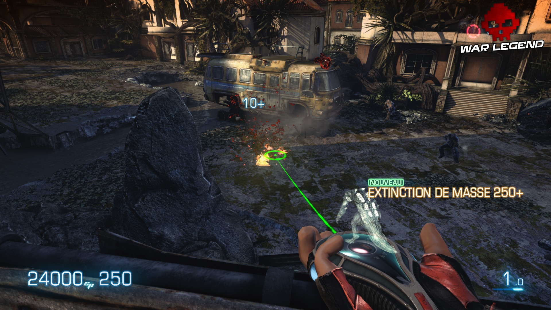 Le nouveau mode de jeu, en revanche, est un ajout plus que sympathique et bienvenue pour les fans de la première heure de Bulletstorm. Le mode Echo était tout simplement une variante de scoring pour la campagne, où le joueur retentait un tronçon dans le but de faire péter le score le plus élevé. Le nouveau mode Echo Ultime suit le même principe, sauf qu’il rajoute des règles spécifiques à la mission, et ce de trois manière différente. Il faudra parfois se contenter d’une arme, varier au maximum les Skillshots, terminer le plus rapidement possible, réaliser uniquement des Skillshots d’un certain type, etc. Comme on retrouve les 30 missions Echo, rejouées trois fois de façon différente, ce sont pas moins de 90 défis qui sont proposés au joueur, et ils sont loin d’être simples. Le mode multijoueur en coop est toujours présent et sympathique mais n’a pas eu de ravalement visible, mis à part le fait que tous les DLCs de l’époque sont inclus dans le jeu… c’est déjà ça.