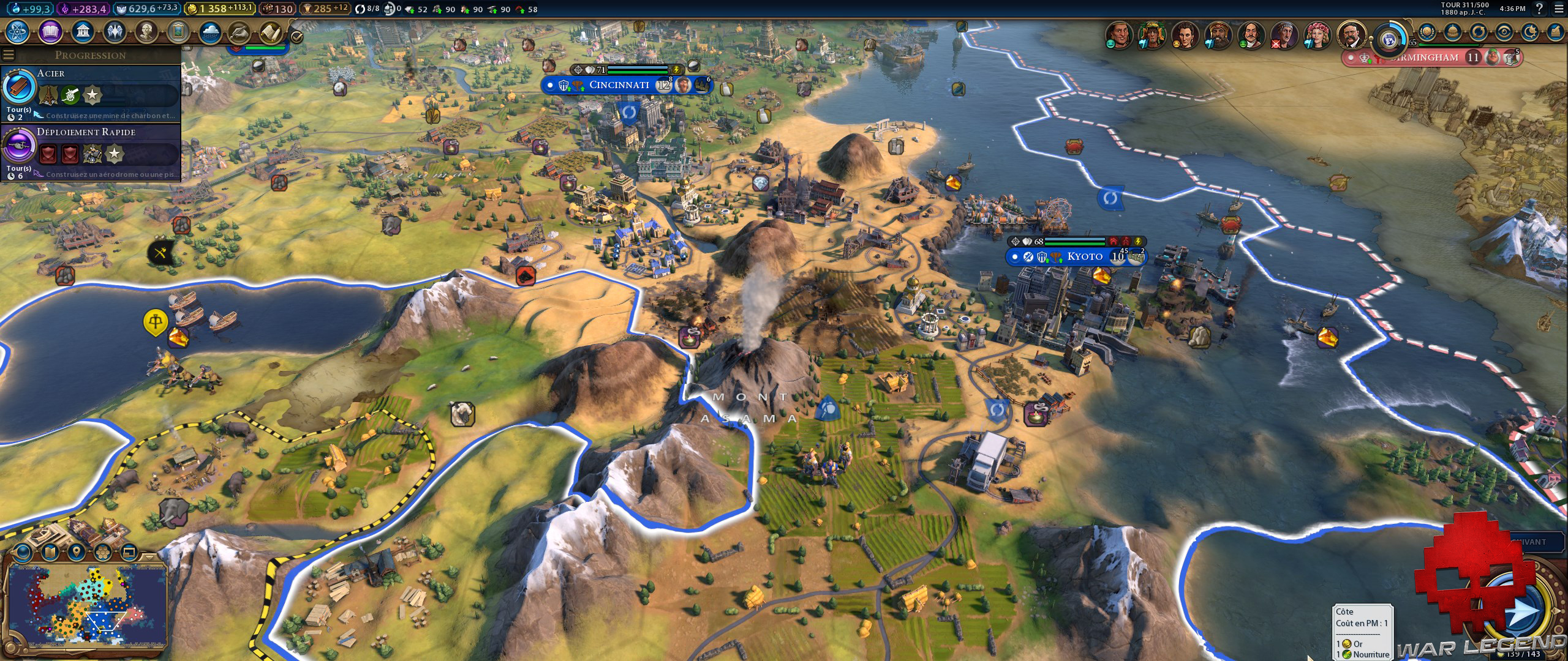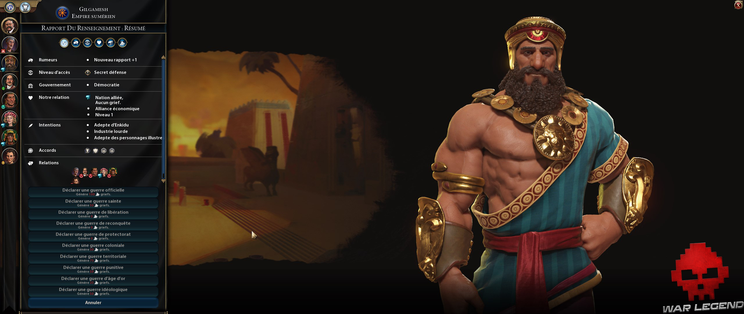 Notons cependant la modification du système de bellicisme, très intéressant. Il est maintenant question de griefs qui rendent la partie guéguerre plus logique. Si je me fais poutrer par surprise, on ne m’en voudra pas tellement de retourner la faveur pour reprendre quelques villes, mais si je vais trop loin et que je capture des villes d’origine de la cible de ma vengeance, je génère des griefs que les autres nations peuvent utiliser pour me faire la guerre sans trop de pénalités auprès des autres dirigeants.