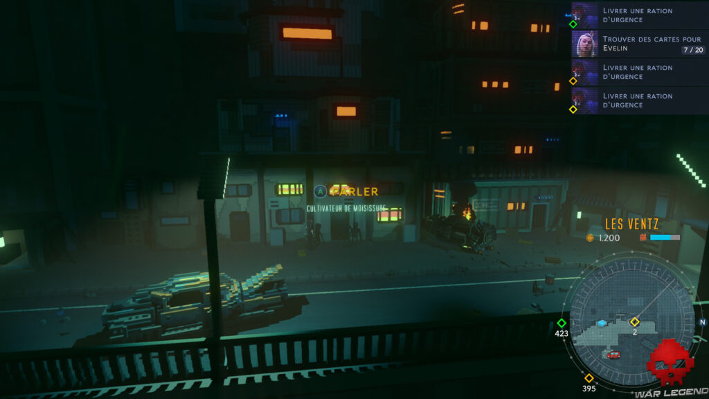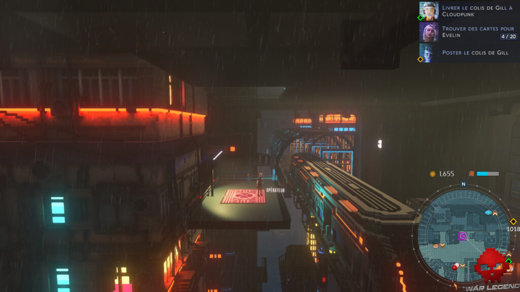 Mais il faut être honnête, si Cloudpunk titille autant la curiosité des joueurs, c’est avant tout grâce à son atmosphère absolument sublime, à la frontière entre Blade Runner et Le Cinquième Élément. Jamais un monde réalisé en voxels n’aura été aussi beau. Véritable protagoniste principal du jeu, la ville de Nivalis — à la fois colorée et pourtant si froide — prend littéralement vie devant nos yeux.