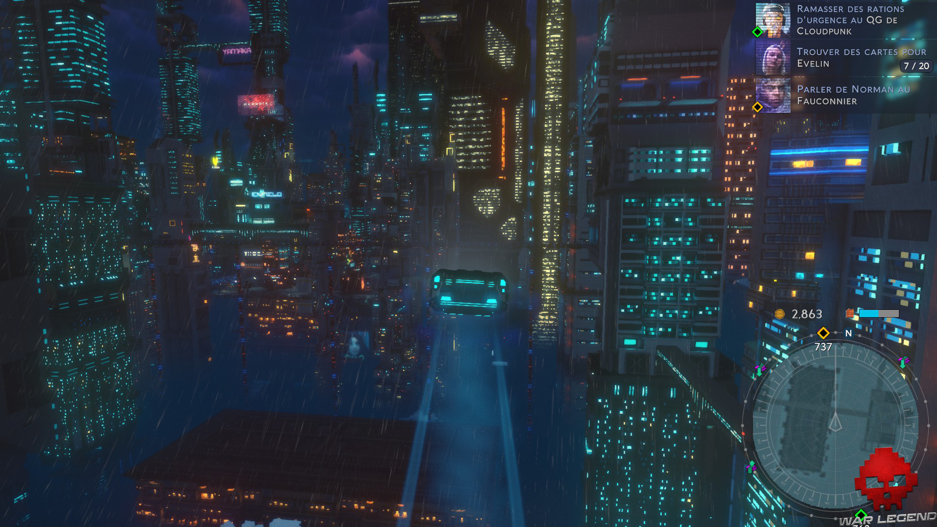 Et c’est bien dommage, car nos premiers pas dans Cloudpunk nous laissent penser que nous sommes dans un jeu en monde ouvert dense et fourmillant d’activités annexes. Au final, on se retrouve avec un jeu possédant une excellente composante narrative, certes, mais dont la seule liberté d’action se résume à ramasser des trucs posés aux quatre coins de la carte. En totale opposition avec sa réussite visuelle, Nivalis est un échec ludique.