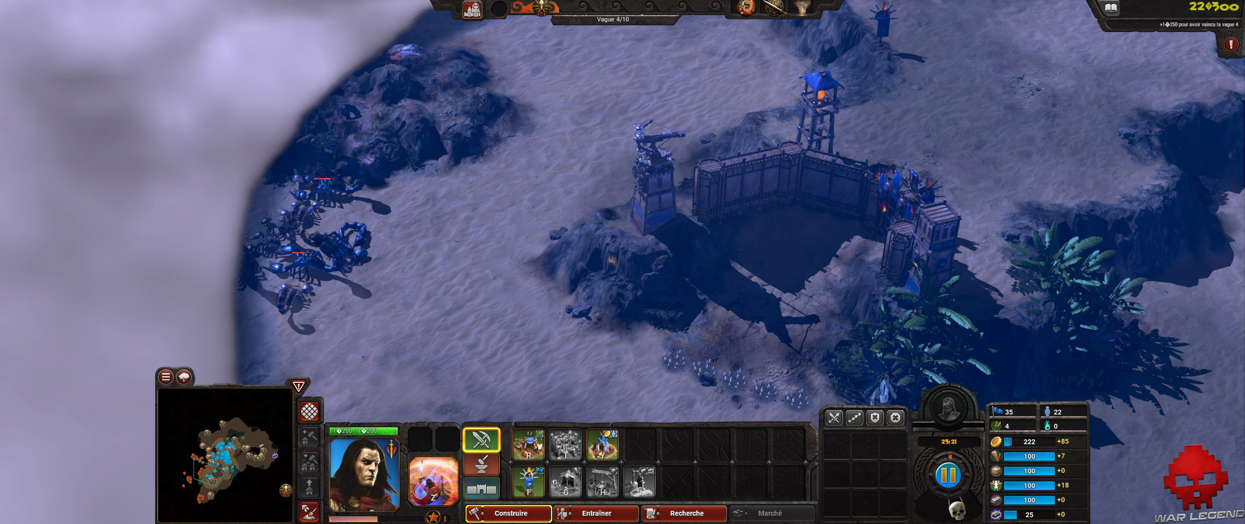 Une fois que vous aurez un peu développé votre base, vous pourrez produire des unités militaires qui pourront défendre les lieux et accompagner votre héros. Eux aussi peuvent devenir vétéran, mais n’ont qu’un seul niveau et pas de compétence associée.