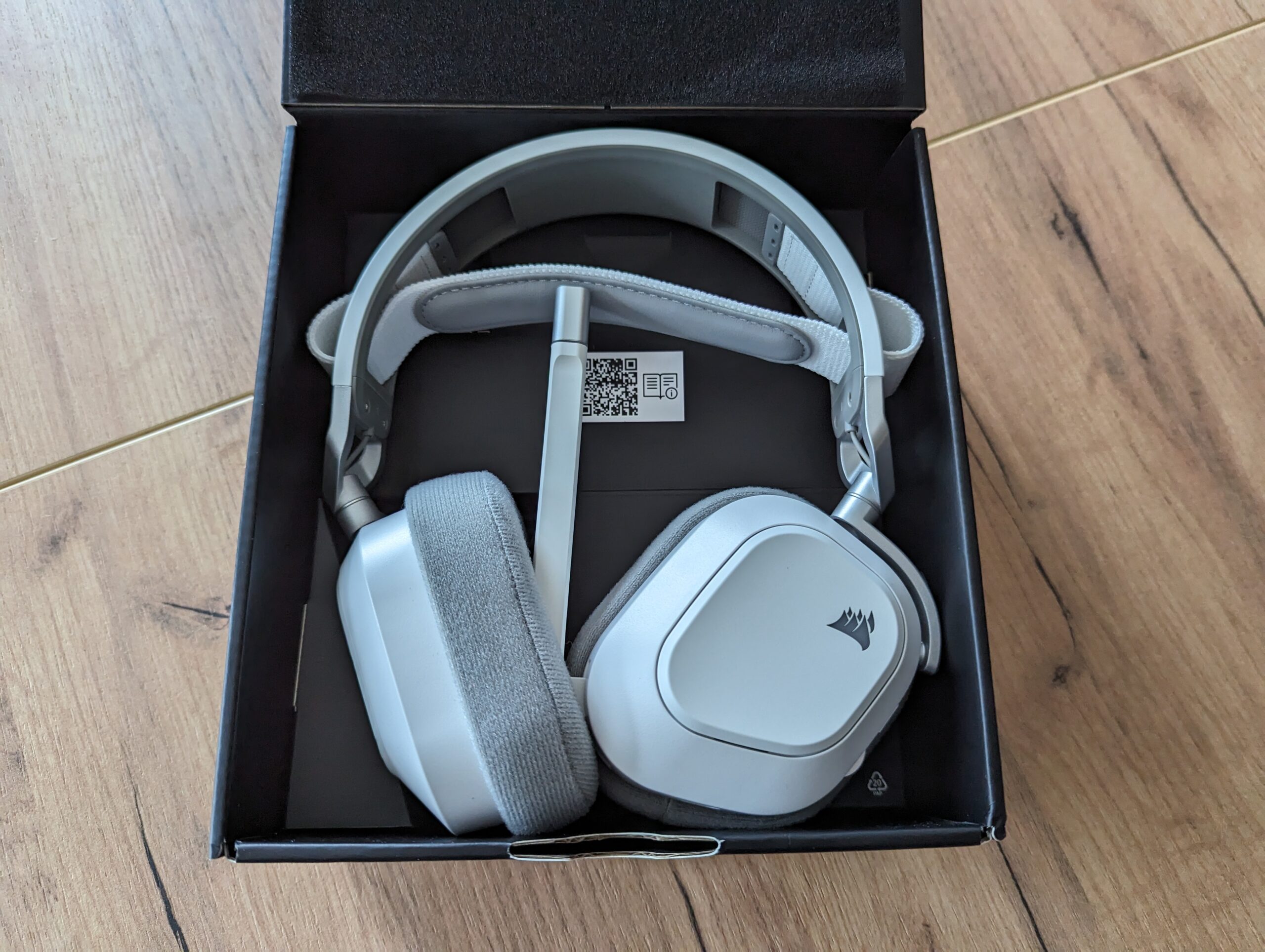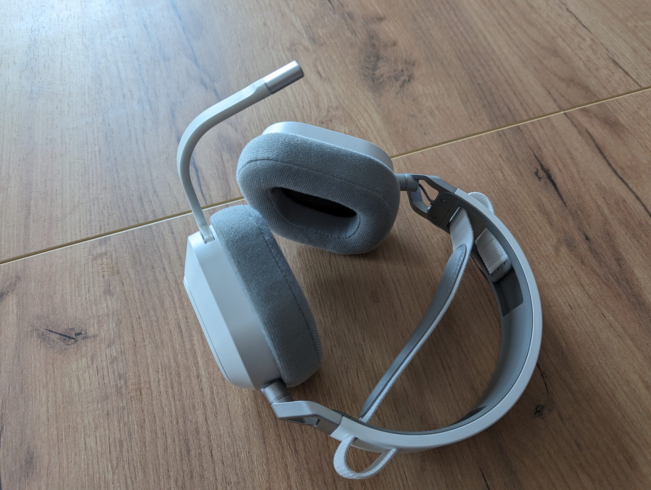 Le HS80 Max Wireless se présente en toute sobriété, et c’est tout ce qu’on aime. Une LED RGB (désactivable dans le logiciel propriétaire) éclaire le logo de la marque, apposé sur une jolie robe blanche satinée.