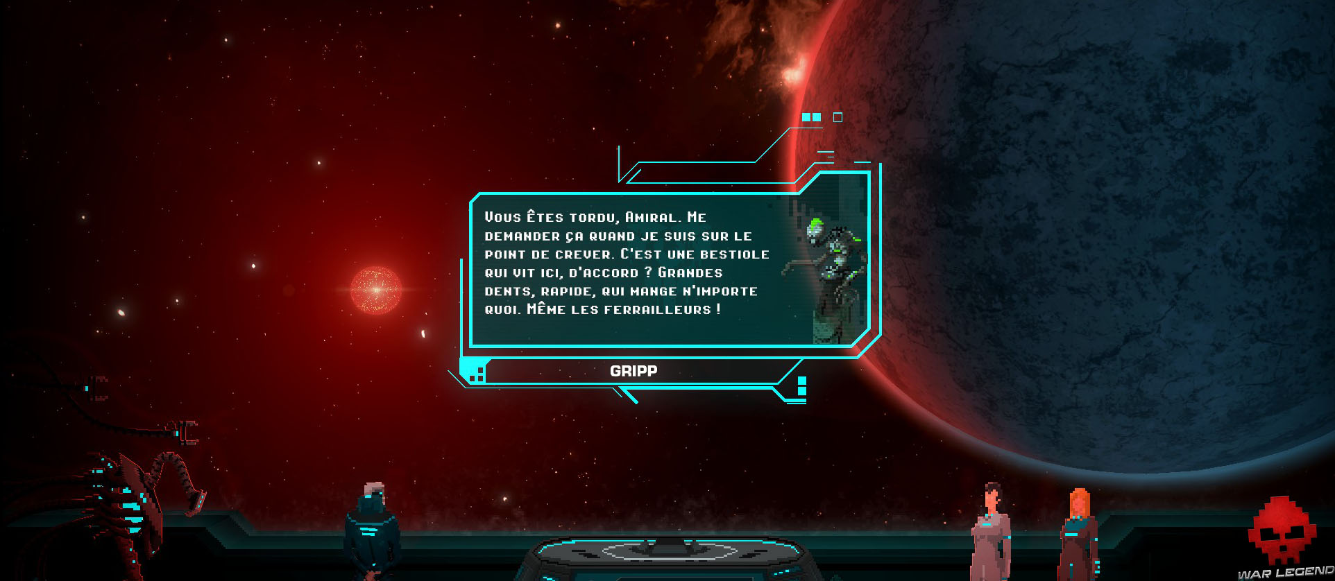 [Crying Suns] installe le joueur dans des dialogues captivants qui ont malheureusement le tord de venir à se répéter trop rapidement.