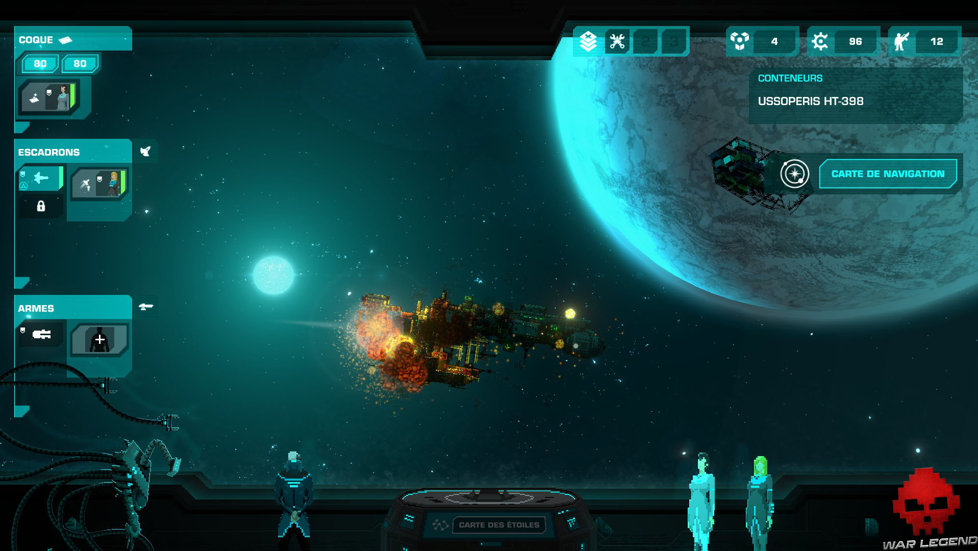 L’ambiance est aussi boostée par la mise en scène et la qualité des animations. On est sur du pixel art et des dessins à la mano qui ont fière allure avec une bonne diversité des couleurs, dans la mesure du possible pour un contexte spatial. Le fait de voir en quasi permanence à travers la grande baie vitrée du vaisseau, l’équipage posté devant, donne une chouette impression Star Trek.