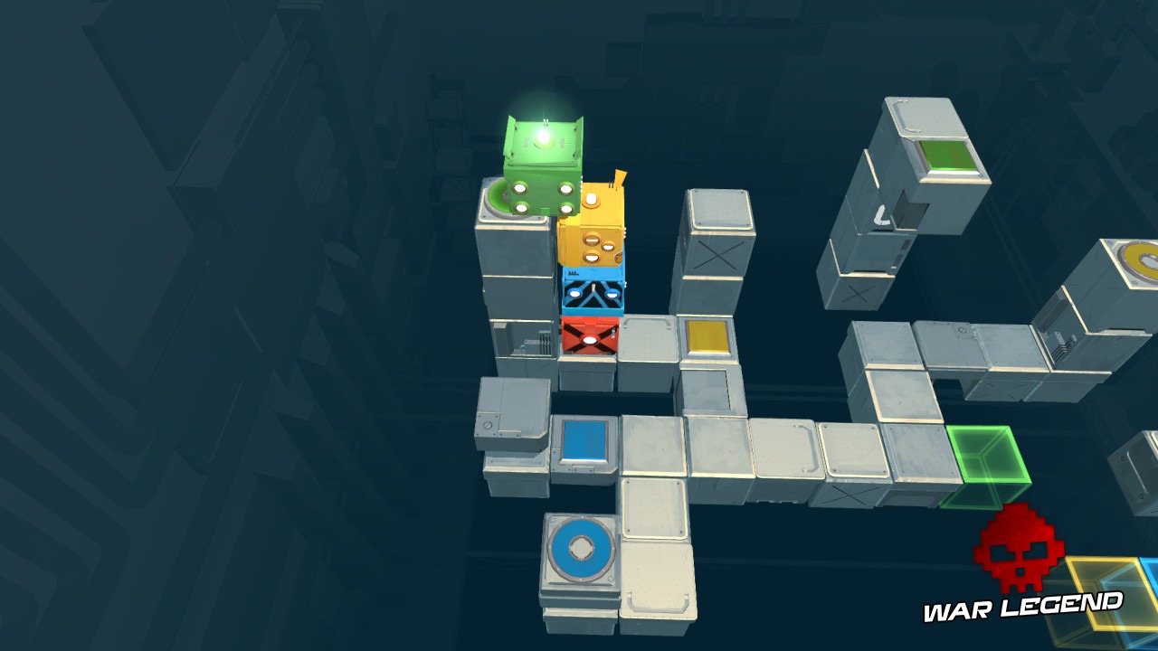 Le gameplay est donc d’une simplicité enfantine, mais le level design le rend tout de suite brillant. Si les premiers niveaux sont plats, la notion de verticalité arrive vite et il faudra parfois en plus jouer les équilibristes avec ses potes comme au Cirque du Soleil pour arriver à atteindre certaines hauteurs, ce qui échouera telle une tour de Jenga la plupart du temps. Le moindre faux mouvement se paie cash. Si la construction des niveaux est faite en grille, les développeurs ont gardé l’idée sadique de faire les déplacements dans la précision. Comme les règles ne sont pas claires dès le départ sans expérimentation, l’échange entre les joueurs est primordial pour comprendre qui fait quoi. D’ailleurs, expérimentation rime souvent avec échec, il ne faut alors pas se décourager. Profitez-en toujours pour vous foutre de la gueule de votre pote qui vient de tomber vers sa fin.