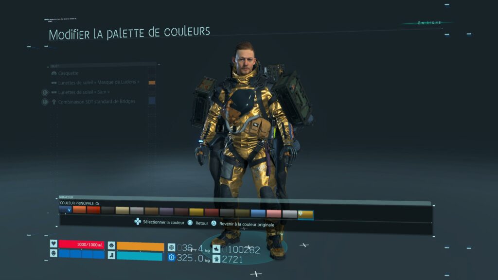 Death Stranding Director’s Cut vous propose également de personnaliser davantage Sam en proposant notamment des couleurs différentes pour la capsule BB et de nouvelles couleurs d’équipement, notamment le doré et l’argenté, d’un goût… incertain dirons-nous.