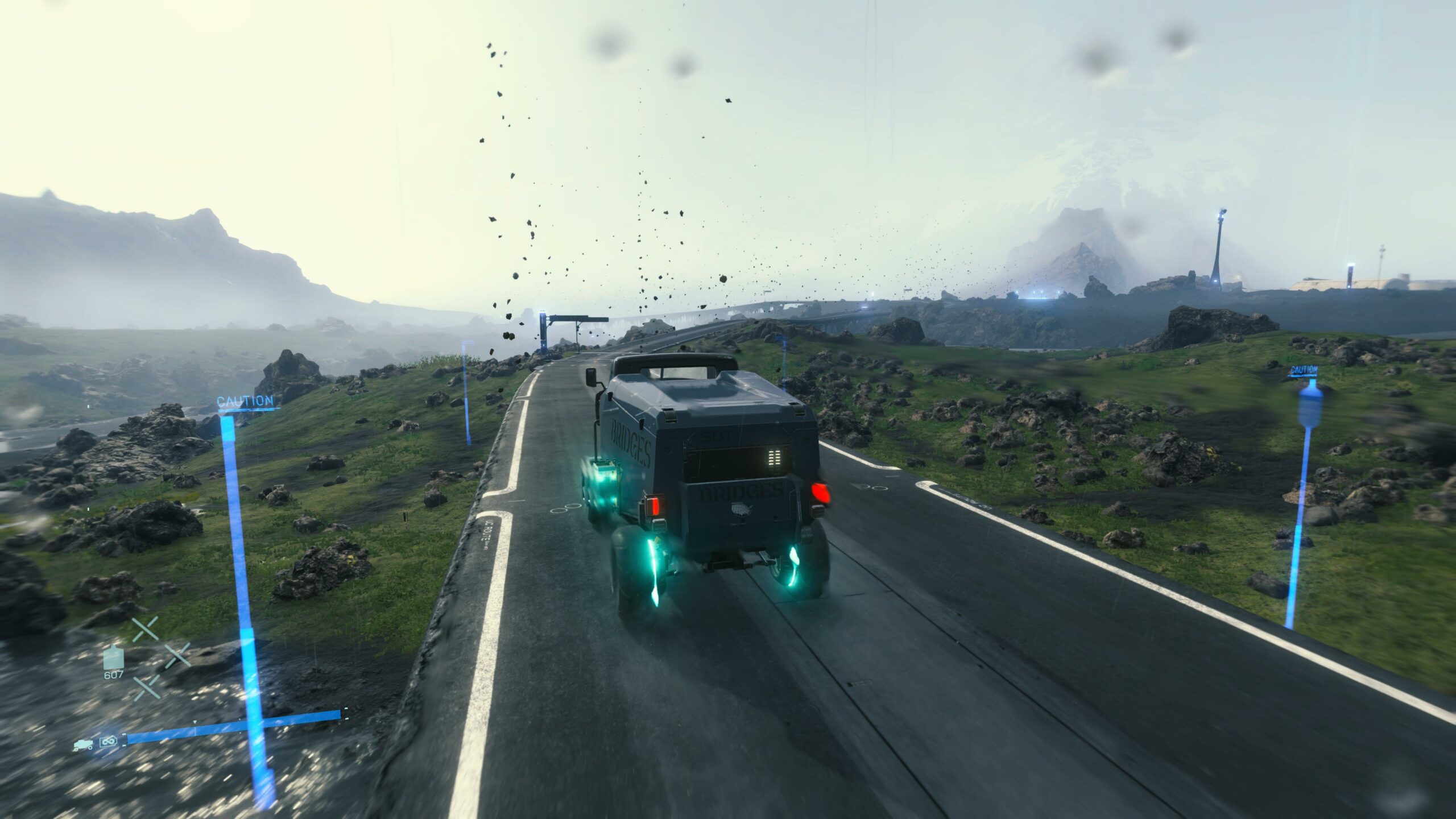 Au rang des « ajouts pas franchement indispensables mais ok ils sont là », on a le circuit de Fragile, qu’il faudra construire au préalable, comme les routes. Cela vous permet d’entreprendre des courses, là encore classées face aux autres joueurs. Pourquoi mettre un circuit dans un jeu comme Death Stranding ? Parce que. C’est la seule justification que j’ai trouvée. Là, on est vraiment sur un truc dispensable, mais après tout, rien ne vous oblige à le construire.