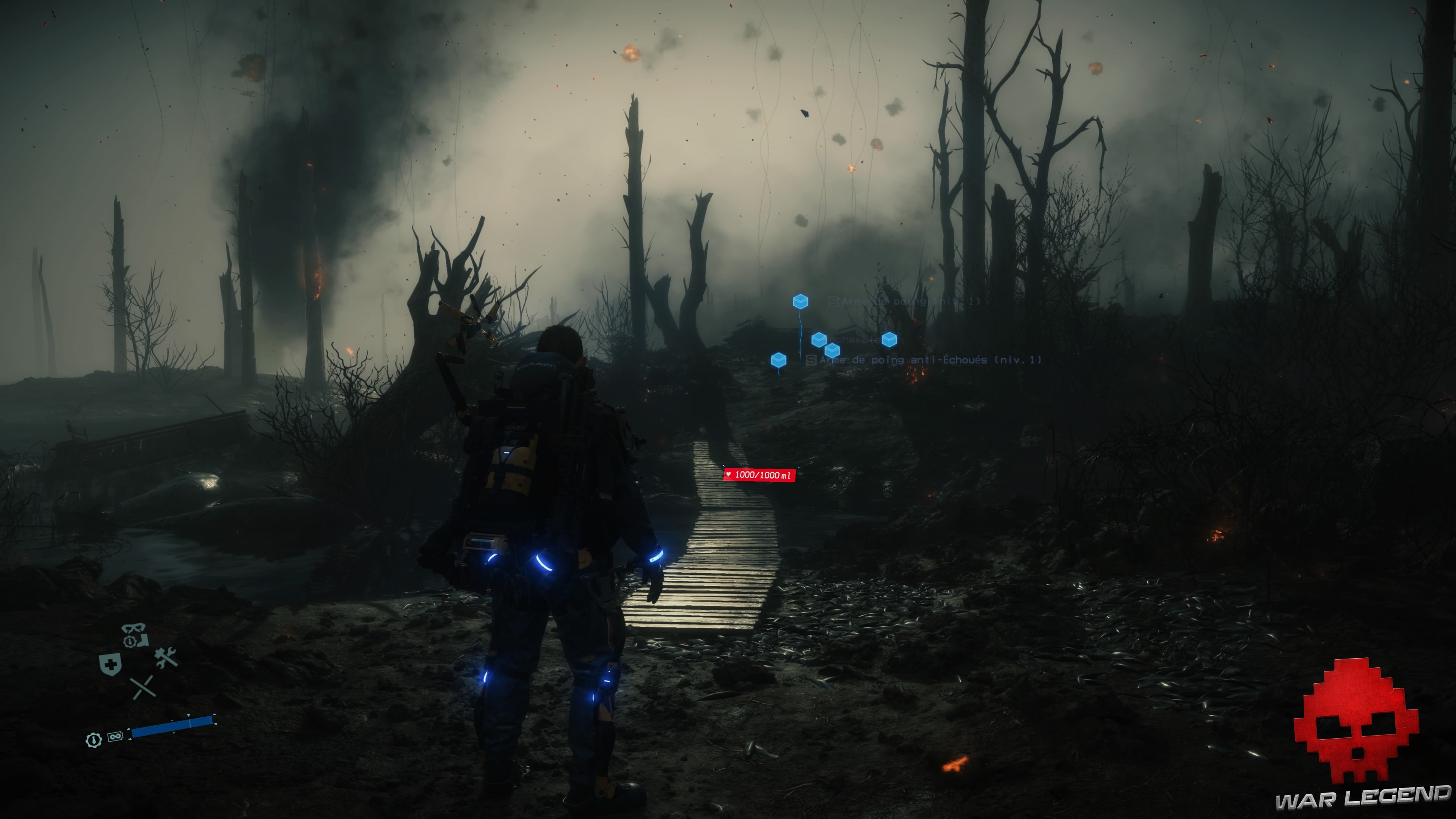 Votre bras mécanique est aussi un radar : une impulsion scanne le paysage et vous permet d’identifier les reliefs ainsi que les marchandises abandonnées que vous pouvez glaner pour quelques likes supplémentaires, soiffards que vous êtes. Mais il permet aussi de désamorcer les scans ennemis si vous déclenchez l’impulsion avant d’être scanné. À partir de là vous pouvez utiliser une corde pour passer derrières les MULES et les ligoter, quitte à nettoyer leur camp et permettre à des PNJ transporteurs de traverser la zone pour quelque temps… – cet aspect-là ajoute quelque chose de très organique au monde de Death Stranding – et puis piller les coffres tant qu’à faire.