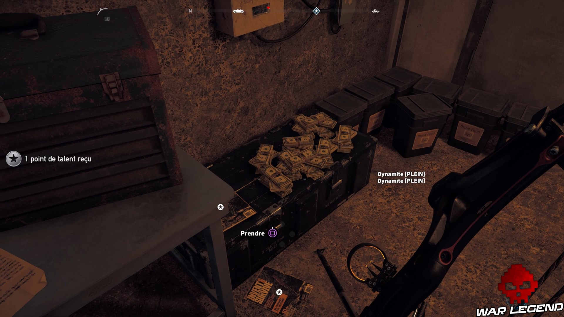 Découpée en trois principales régions réparties entre les lieutenants de Jacob (Le Père), la carte de Far Cry 5 vous propose de nombreuses activités. En dehors des activités anecdotiques dont on se fout un petit peu – il faut dire ce qui est – type partie de pêche, vous aurez l’opportunité de trouver des caches de survivaliste renfermant de l’équipement, des munitions, du pognon et, si vous avez de la chance, un équipement unique.