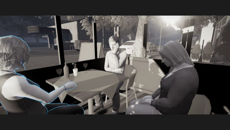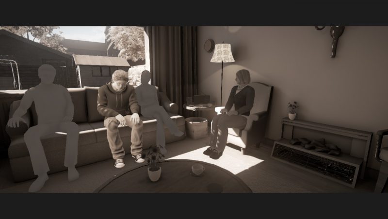 Comme cité au-dessus, c’est une expérience narrative. Certains emploieront le terme de « film interactif », vous y suivrez les récits de 4 personnages : Sarah, William, Harry et Mary (la grand – mère de William). Précisons que vous « suivrez » l’histoire car vous ne les incarnerez pas, vous serez comme un cameraman assistant extérieurement à l’action, ce qui a un bon et un mauvais côté. Le bon est qu’on se focalise vraiment sur ce que l’on entend et sur ce que l’on voit, aucun dérangement ne survient, vous écoutez et regardez tranquillement comme si vous lisiez un journal rempli de petites histoires. En revanche, comme j’ai pu le ressentir à certains moments, nous sommes tellement spectateurs qu’il est possible de se sentir « exclu » de l’histoire. Comme si vous n’étiez là que pour espionner. Spécial, mais pas non plus très dérangeant.