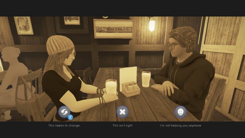 William, autant dire que sa vie n’aura pas été simple. Je vous énonce quelques extraits de l’histoire car il m’est impossible de parler du jeu sans parler de son point fort ! Une enfance difficile, des parents aux croyances compliquées ainsi qu’une découverte pour une attirance envers les hommes. Plus qu’aborder le sujet des morts soudaines d’êtres chers, le sujet de la bisexualité est également évoqué. Alors qu’il est en couple avec Sarah, notre héros va petit à petit se rapprocher de son meilleur ami Harry jusqu’à développer des sentiments un peu plus forts. Et c’est là où les points de vues se dévoilent. Sarah qui a décemment remarqué que son copain avait une attirance pour les hommes l’encourage à trouver la personne avec qui il sera le plus heureux, quitte à perdre son cher et tendre. Du côté de la grand – mère, quel choc ne serait-ce pas d’apprendre que son petit fils avec qui vous aviez passé tant de bons moments embrasse un homme ? Un choc qui la laissera sans voix et créera des distances familiales.