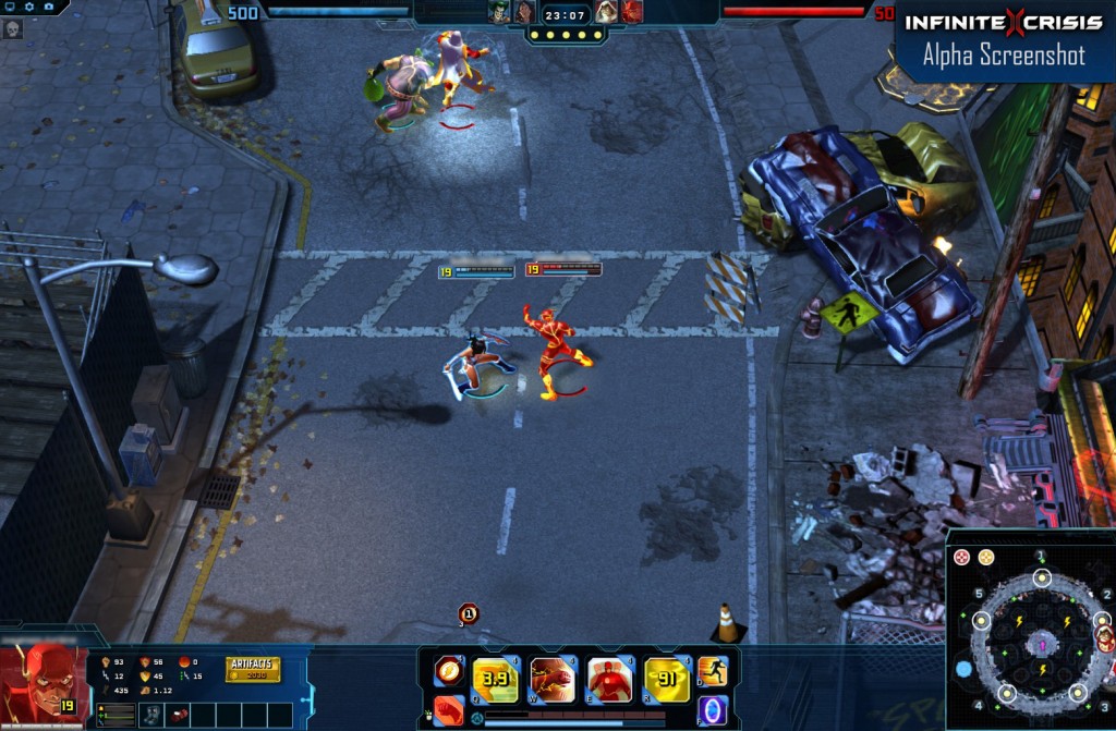 Du point de vue de l’e-sport, Infinite crisis compte bien devenir un acteur déterminant de la scène compétitive du MOBA, ambition affichée par le biais d’un récent partenariat avec la MLG (Major League Series) qui est la plus grande organisation d’e-sport suivie par des milliers de viewers. Grâce à ce partenariat, Infinite Crisis se fera connaitre par la communauté de l’e-sport notamment par le biais d’événements dédiés, et ce à tous niveaux, étant avéré qu’Infinite Crisis rejoindra ses concurrents au sein du MLG Pro Circuit. C’est notamment par le biais d’un event à l’E3 que ce partenariat apparaîtra de manière concrète aux joueurs, à qui il sera proposé des matchs entre les teams compétitives Curse Academy et Complexity, streamés du 11 au 13 juin sur le site officiel d’Infinite Crisis ou de la MLG à partir de 12h. Nous ne vous parlons donc plus uniquement d’un MOBA Casual se limitant à un côté fun et défouloir, il s’agira d’un MOBA qui a vocation à compter et à s’afficher aux côtés des plus grands , car selon les mots mêmes des concepteurs « il est fun à jouer, possède une grande marge de progression et est naturellement attractif du point de vue du spectateur ». Comme le précise Jeffrey Steefel, « le but est de présenter aux joueurs les univers de DC auxquels ils sont le moins coutumiers, de façon à créer une large communauté mondiale qui s’illustrera dans les compétitions. »