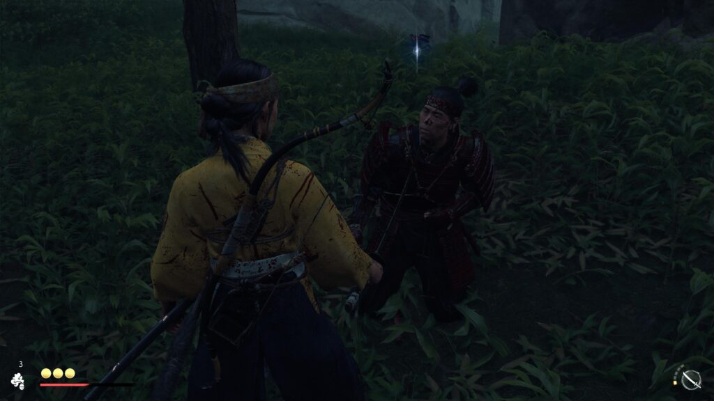 Là où le bât blesse encore un peu, c’est sur l’intelligence artificielle lors des phases d’infiltration. C’était le gros point noir de Tsushima, et force est de constater que les gardes ont toujours besoin d’une bonne paire de lunettes. On peut parfois massacrer un type à deux mètres de son pote sans que ce dernier ne lève un sourcil, juste parce qu’on était accroupi dans les hautes herbes. C’est frustrant de voir un jeu aussi soigné techniquement proposer des mécaniques de détection qui datent de la PS3. Heureusement, le level design plus vertical offre davantage d’options d’approche, rendant ces phases moins linéaires, mais on aurait aimé que les ennemis soient un peu plus « vivants » et moins scriptés dans leurs rondes.