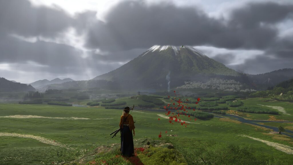 On avait laissé Jin Sakai gérer ses problèmes de famille et d’invasion mongole dans une ambiance très « cinéma de samouraï des années 50 ». Avec Ghost of Yōtei, Sucker Punch fait un bond dans le temps de plus de 300 ans pour nous emmener en 1603, sur les terres sauvages d’Ezo, l’actuelle Hokkaido. Oubliez les codes d’honneur rigides et les tontons moralisateurs ; ici, on est dans une ambiance qui flirte davantage avec le western spaghetti sauce soja. Atsu, notre nouvelle protagoniste, n’est pas là pour sauver son clan, mais pour suivre sa propre vengeance au pied du mont Yōtei. Ce changement de ton est rafraîchissant et permet aux scénaristes de s’affranchir du poids de l’héritage Sakai pour proposer une écriture plus incisive, plus cynique aussi. Atsu est une traqueuse, une solitaire, et son rapport au monde est beaucoup plus rugueux que celui de notre bon vieux Jin.