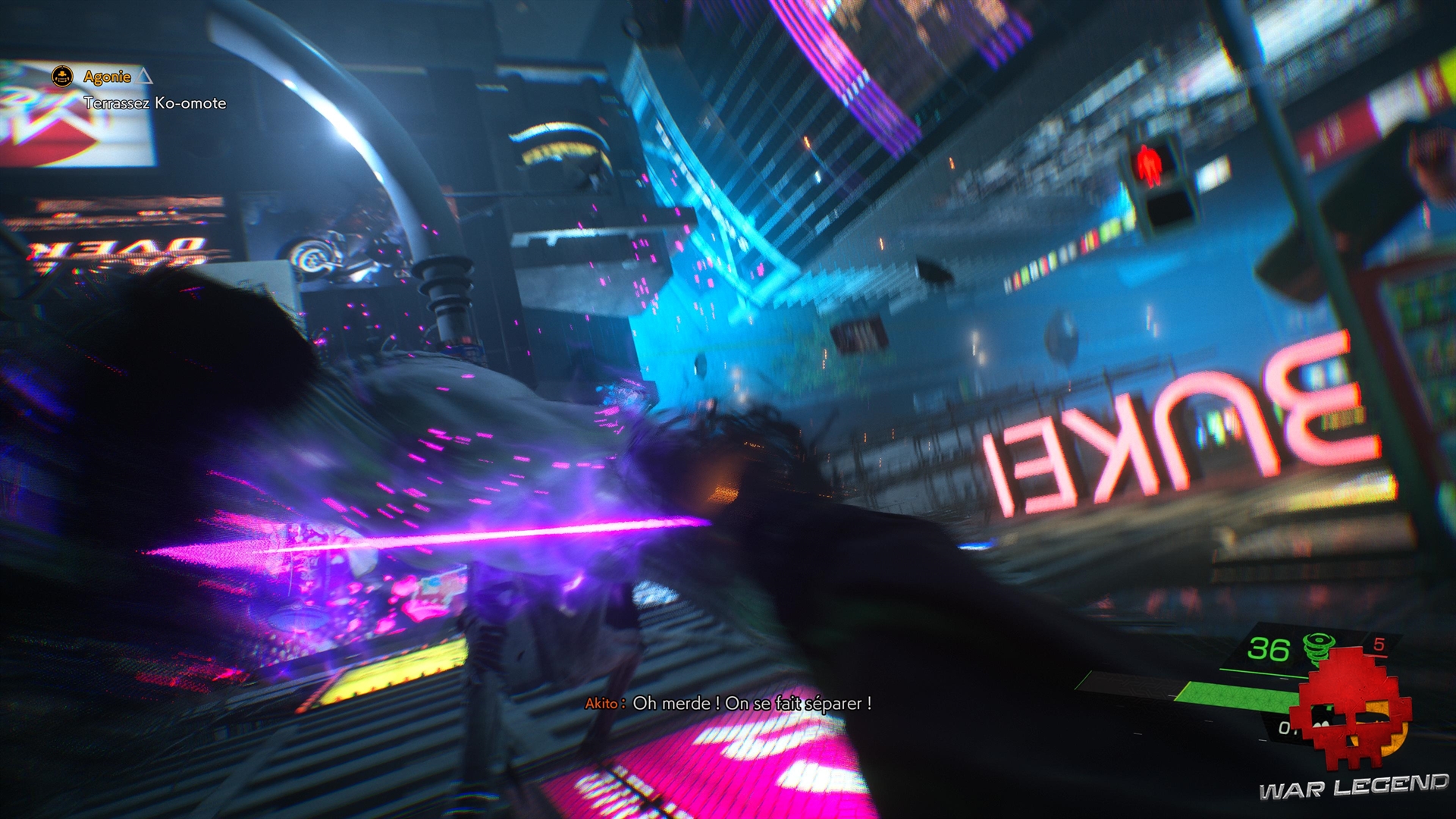 Bon, coupons court à la présentation du scénario, parce que si le constat de départ est suffisamment impressionnant pour accrocher, le reste est particulièrement convenu. Le stéréotype des deux personnages qui cohabitent dans le même corps fonctionne pendant un temps, non sans sens de la camaraderie et sans humour (et l’utilisation du haut-parleur de la DualSense participe pas mal), mais les petites interactions rigolotes liées au contexte deviennent rapidement répétitives. Pour peu que l’on se sente investi par cette quête de sauver Shibuya et la sœur d’Akito, la narration va tout de même parfois bien trop vite pour son propre bien.