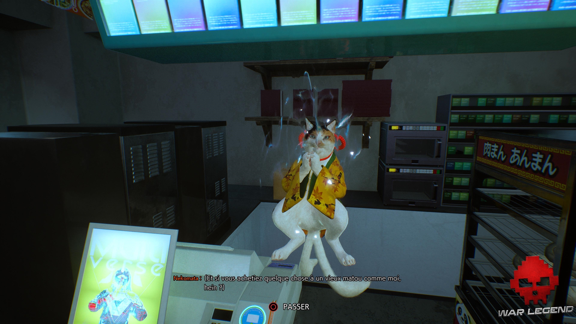 Enfin, l’ambiance du titre passe aussi par la nature des autres créatures que vous croiserez… à savoir les pauvres chiens et chats laissés à l’abandon, avec qui vous pourrez discuter grâce aux pouvoirs de KK. Parce que les gérants des konbinis sont également absents, les nekomatas ont décidé de prendre le relais pour vous permettre d’acheter régulièrement de précieuses ressources de combat… quitte à vous envoyer chercher de la camelote aux quatre coins de Shibuya.