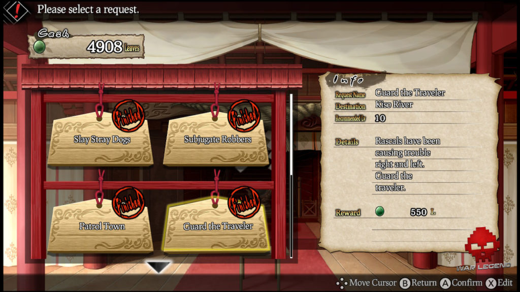 God Wars n’a pas oublié l’un des grands amours du RPG, c’est-à-dire les quêtes secondaires et le contenu annexe en masse. Eh oui, à force d’avancer sur la carte du monde vous débloquerez des sanctuaires, qui vous proposeront de faire des offrandes pour des bonus lors de votre prochain combat, ou des requêtes à accomplir. Ces requêtes vous ramèneront sur des zones combats déjà visitées, mais de nouveaux défis vous y attendront.