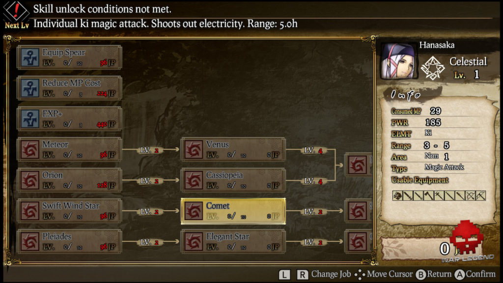 Ce qui soulève un point important de God Wars : le système de job. Loin d’être une nouveauté dans le genre du RPG, les jobs sont un des piliers principaux du jeu et une grande partie de votre tactique reposera dessus. Chaque personnage peut avoir 3 jobs : un principal, un secondaire et un unique. Le principal influe directement sur les statistiques, l’équipement qui peut être utilisé et les compétences, tandis que les deux autres donnent juste accès à des arbres de compétences supplémentaires.