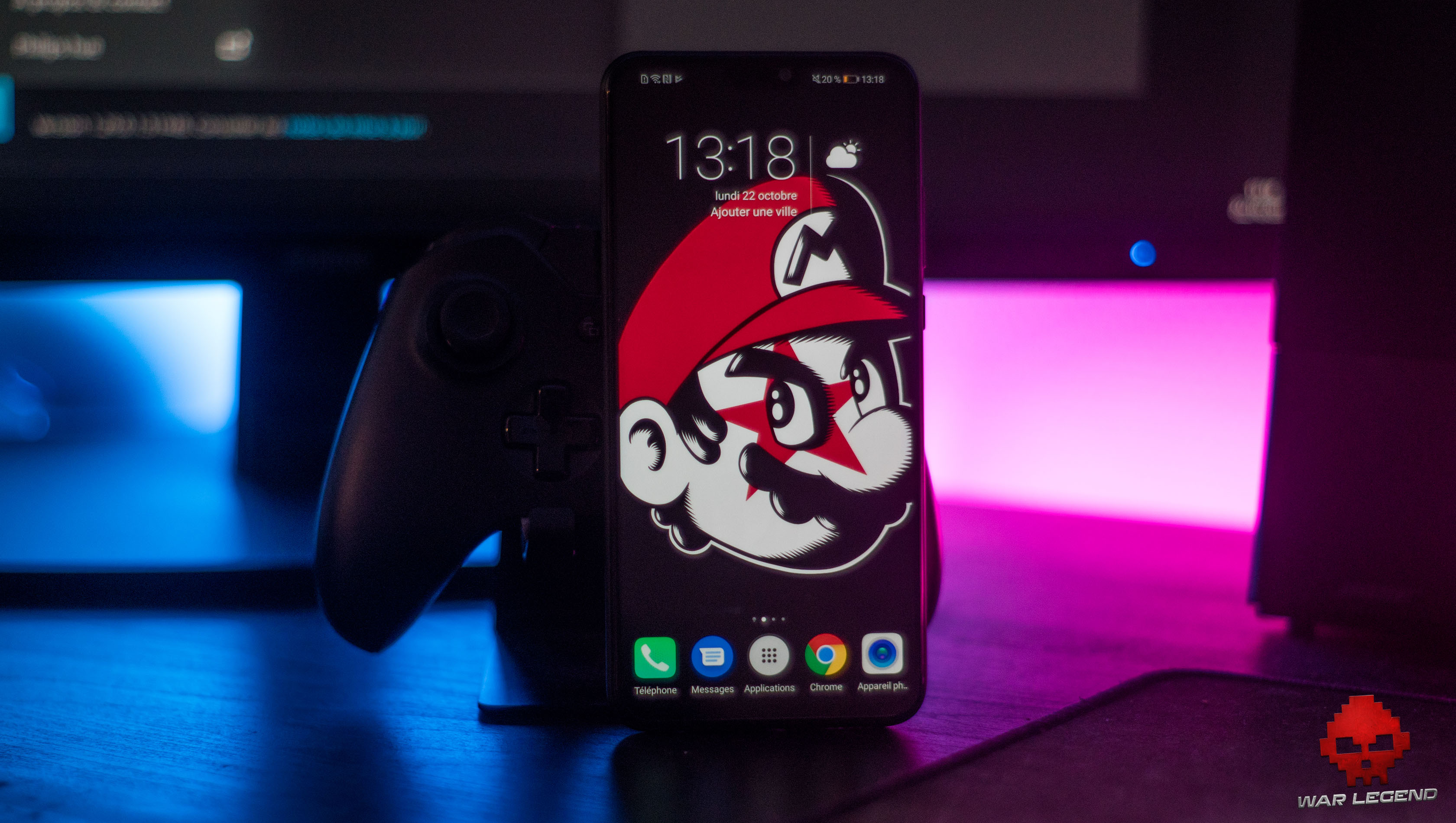 L’encoche de 2 cm de large sur la partie supérieure de l’écran est camouflée dès lors qu’un jeu est lancé. Il est donc possible de profiter d’une surface claire et suffisamment proportionnée. Avec son menton de 4,25 millimètres (à titre de comparaison, un Galaxy S9 se situe à 5,8 millimètres, un OnePlus 6 à 6,1), l’expérience est d’autant plus immersive.