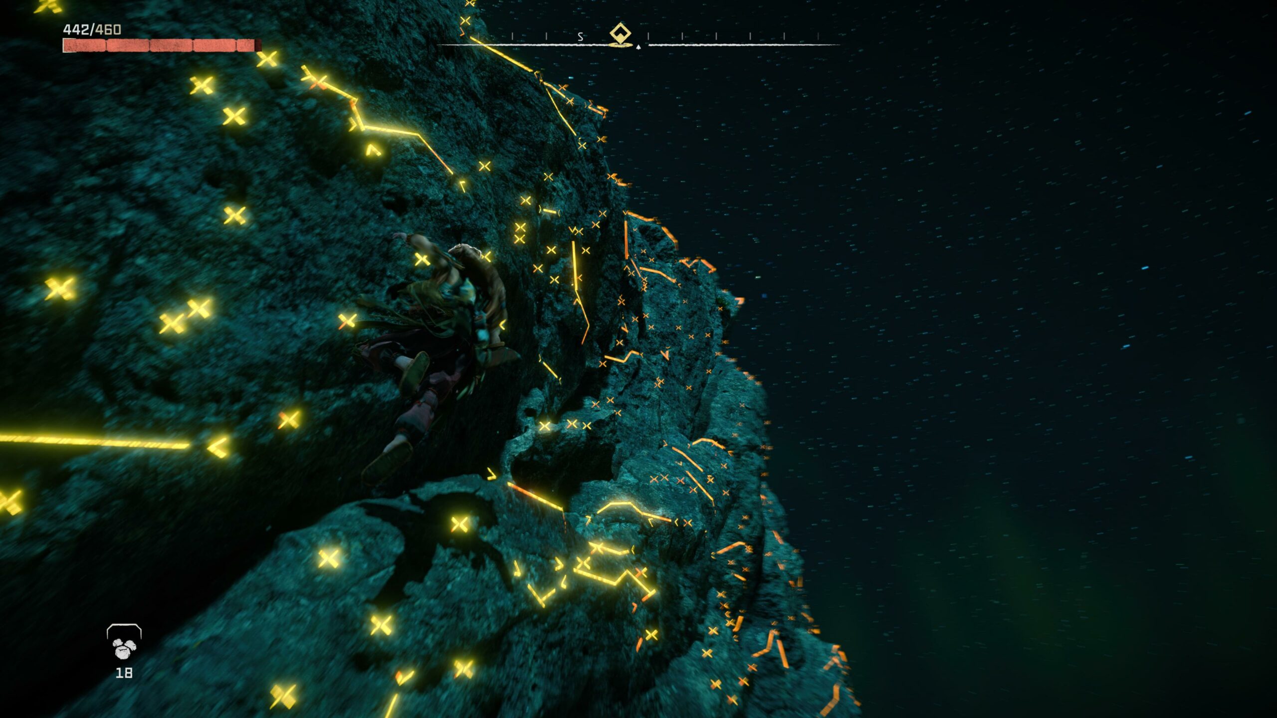 Ce qui est moins visible et c’est tant mieux, ce sont les points d’escalade. On n’en est pas à l’escalade libre de The Legend of Zelda: Breath of the Wild, mais tout de même : beaucoup de parois peuvent être escaladées et les points apparaîtront lorsque vous scannerez les lieux avec votre focus.