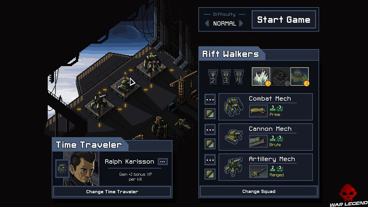 À la fin de chaque île, plus vous aurez accompli d’objectifs à travers les missions, plus vous pourrez acquérir de l’équipement. Cependant, faire évoluer ses Mechs coûte cher, et vous ne pourrez pas augmenter toutes les stats. Même hors des missions, les choix cornéliens se profilent. Une autre méthode pour augmenter son équipement ou gagner des pilotes supplémentaires consiste à finir une île sans rater un seul objectif (difficile) ou de récupérer des capsules temporelles qui viennent se crasher sans prévenir sur le terrain, afin de pimenter un peu plus les parties en ajoutant un objectif secondaire surprise.