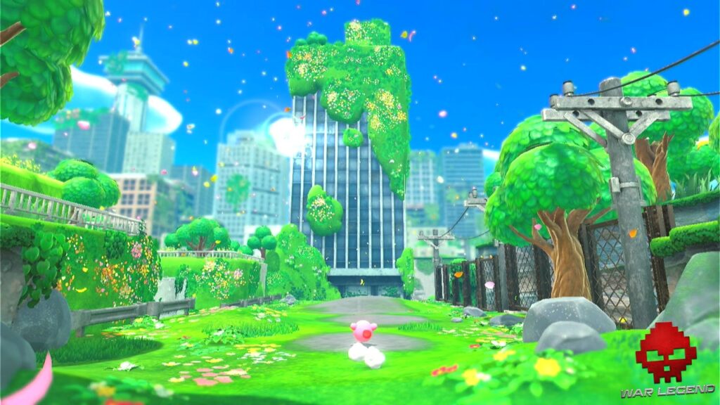 Mais qu’on se le dise, malgré des environnements inspirés de notre univers tristounet bien à nous, le monde oublié de Kirby n’est pas le Mario Odyssey du personnage imaginé par Masahiro Sakurai. Ce n’est même pas un monde ouvert comme les fans se l’étaient imaginé, en réalité. Eh non, c’est un jeu Nintendo avec des niveaux linéaires tout ce qu’il y a de plus classique.