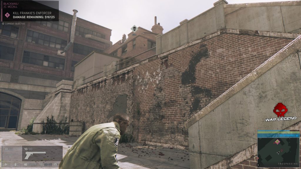 Le combat commencé, vous allez rapidement vous rendre compte de quelque chose : la mafia de New Bordeaux recrute l’intégralité de ses hommes de main auprès de l’amicale des suicidaires. Vos adversaires n’ont absolument rien dans le cibouleau, d’une part, et semblent avoir véritablement envie que vous mettiez un terme à leur existence, d’autre part. Pour la première caractéristique, cela s’étend aux civils au passage : volez du pognon sous le nez d’une secrétaire, sur son bureau, elle s’en contrefout.