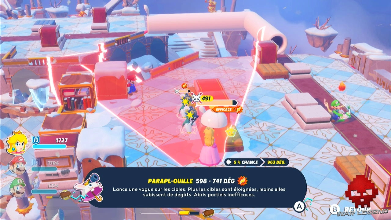 Si le jeu précédent était surprenamment dur à pas mal occasions, Sparks of Hope se révèle déjà bien moins difficile, rendant la progression de la campagne principale déjà bien plus fluide… mais comme dit plus haut, Sparks of Hope pousse également à l’exploration, avec des défis optionnels qui apportent quelque chose sur la table à ceux qui espéraient pouvoir exploiter à fond les nouvelles mécaniques de jeu. Il n’est pas rare de se retrouver dans des combats que l’on pense totalement déséquilibrés, jusqu’à ce qu’on trouve la bonne solution. On retombe alors sur cet aspect « puzzle » des combats chers à Kingdom Battle.