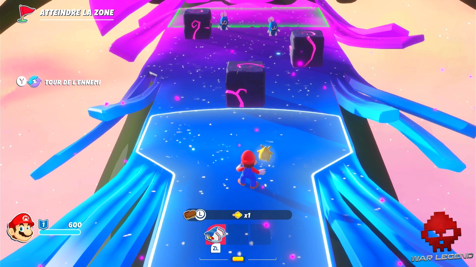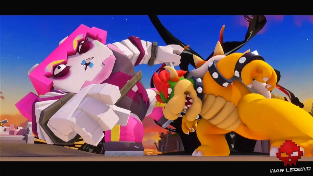 Si Kingdom Battle rendait hommage à plein de facettes la plus célèbre franchise de Nintendo, Sparks of Hope fait surtout pas mal d’allusions à Mario Galaxy, dont on sait les fans nombreux, grâce à son sens de l’aventure et de la découverte. À bord du fier TF-AL (ça ne devrait pas me faire rire), Mario et les Lapins Crétins partent alors à la recherche d’Harmonie en explorant différentes planètes. Une drôle de lapine bien trop badass pour un jeu qui se veut enfantin et au passé trouble, Edge, rejoint la troupe… ainsi qu’un certain Bowser. Les ennemis d’autrefois…