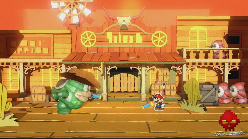 La narration du dernier Paper Mario fait honneur à la série avec une histoire très agréable à suivre et le concept des origamis est plutôt bien exploité pour une direction artistique vraiment toute mimi qui rappellera un peu Yoshi’s Crafted World. Je veux dire par là que les décors en papier mâché pourraient être recréés par un cours d’art plastique de 6e (ce n’est pas un reproche), et toutes les créatures et Esplis ont été élaborés avec de vrais patrons d’origami.